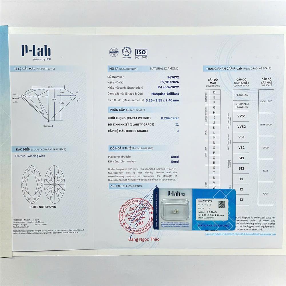 Viên kim cương 5.2-3.5LY sắc J mang ánh vàng ấm rõ nét, tạo cảm giác mộc mạc và gần gũi. Độ tinh khiết I1 thể hiện vẻ đẹp tự nhiên, ánh lửa dịu và có chiều sâu riêng. Phù hợp chế tác trang sức phong cách cổ điển hoặc cá tính, dành cho người trân trọng nét đẹp chân thực và khác biệt.