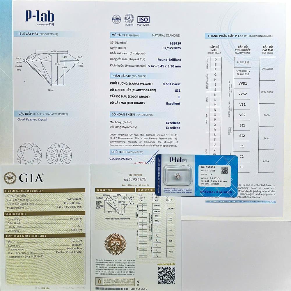 Viên kim cương 5.4LY sở hữu sắc E trắng sáng, mang lại cảm giác tinh khiết và hiện đại. Độ tinh khiết SI1 cho phép các bao thể nhỏ, khó nhận biết bằng mắt thường khi lên trang sức. Viên đá vẫn đảm bảo độ lấp lánh tốt, phù hợp các thiết kế nhẫn hoặc mặt dây thanh lịch, sang trọng.