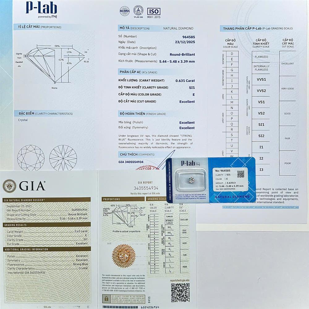 Viên kim cương 5.4LY sở hữu sắc trắng E tươi sáng, độ tinh khiết SI1 cho hiệu ứng lấp lánh tốt khi quan sát bằng mắt thường. Kích thước vừa vặn, bắt sáng ổn định, phù hợp chế tác nhẫn hoặc mặt dây sang trọng. Lựa chọn cân bằng giữa thẩm mỹ, giá trị và tính ứng dụng cao trong trang sức cao cấp.
