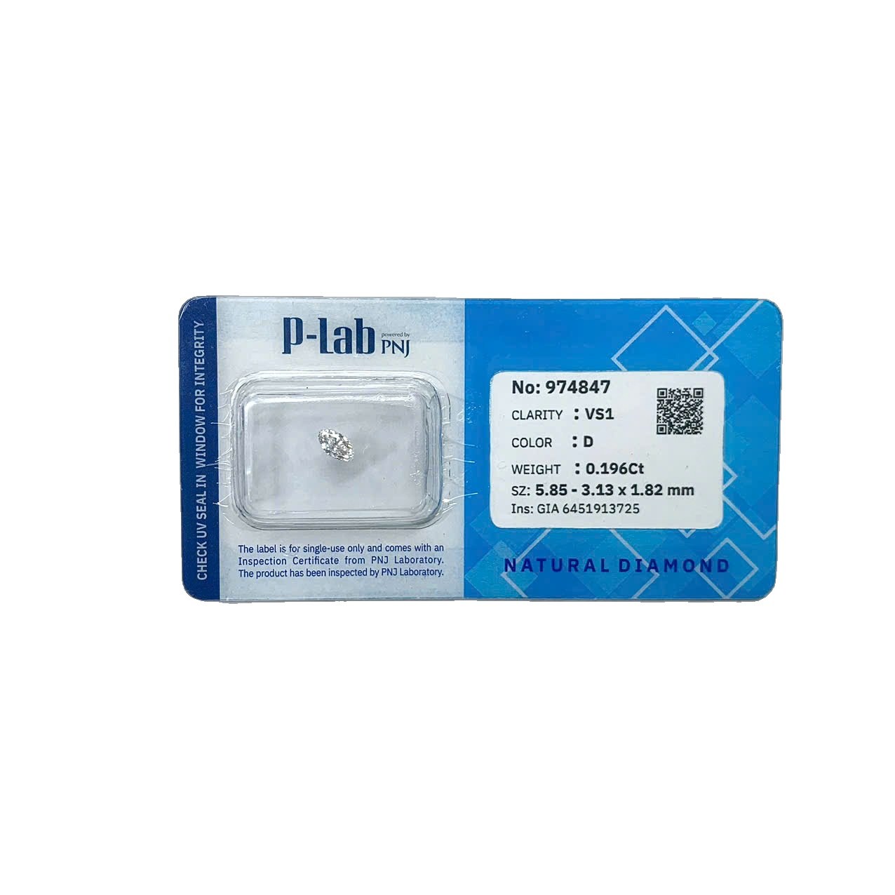 | Trọng lượng: | 0.196Ct |