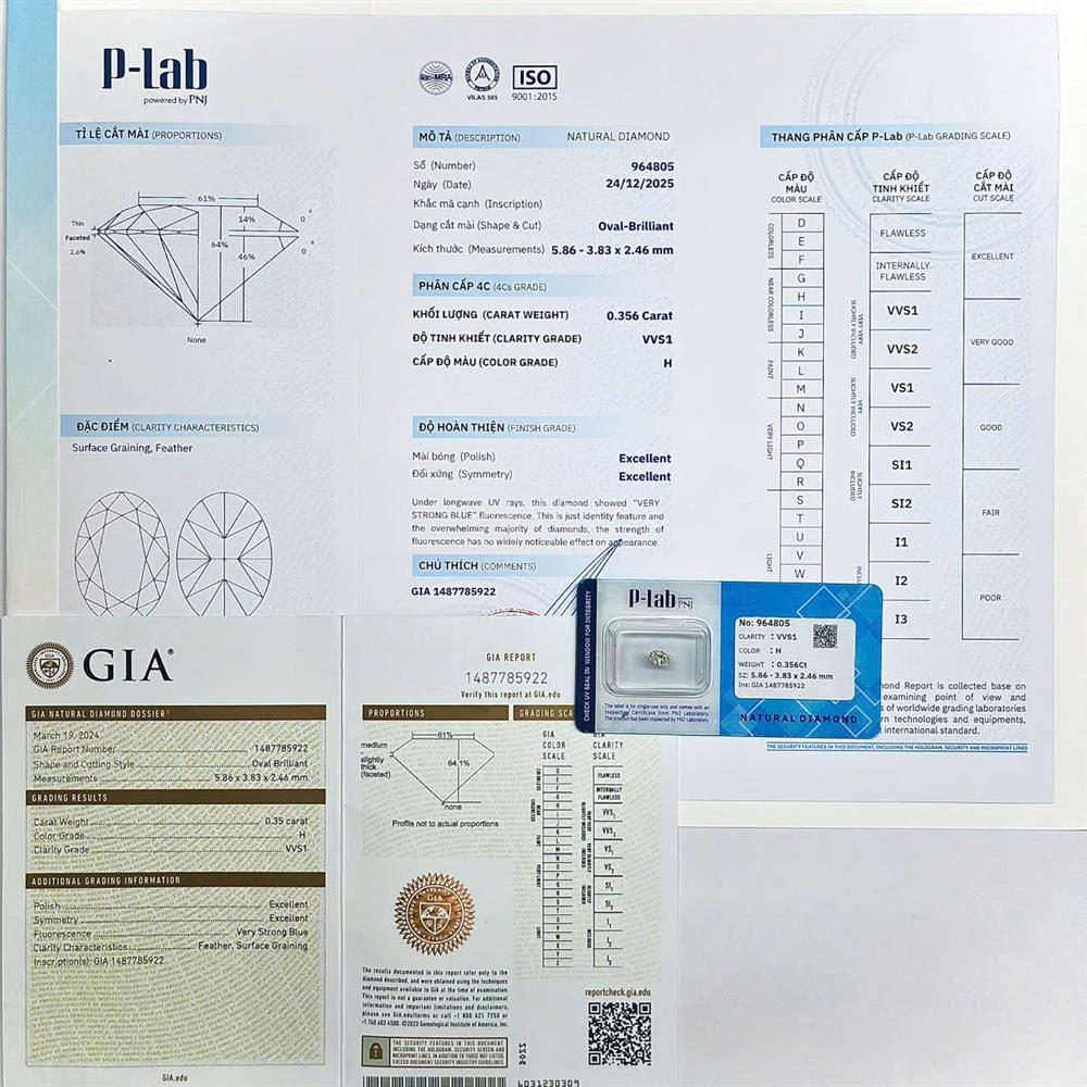 Viên kim cương dáng oval 5.8–3.8LY mang sắc H nhẹ nhàng, tạo cảm giác sáng tự nhiên và hài hòa khi lên trang sức. Độ tinh khiết VVS1 gần như hoàn hảo giúp viên đá rất sạch, ánh lửa phản xạ đều và sắc nét. Dáng oval tôn hiệu ứng thon dài, phù hợp chế tác nhẫn hoặc mặt dây thanh lịch, tinh tế.