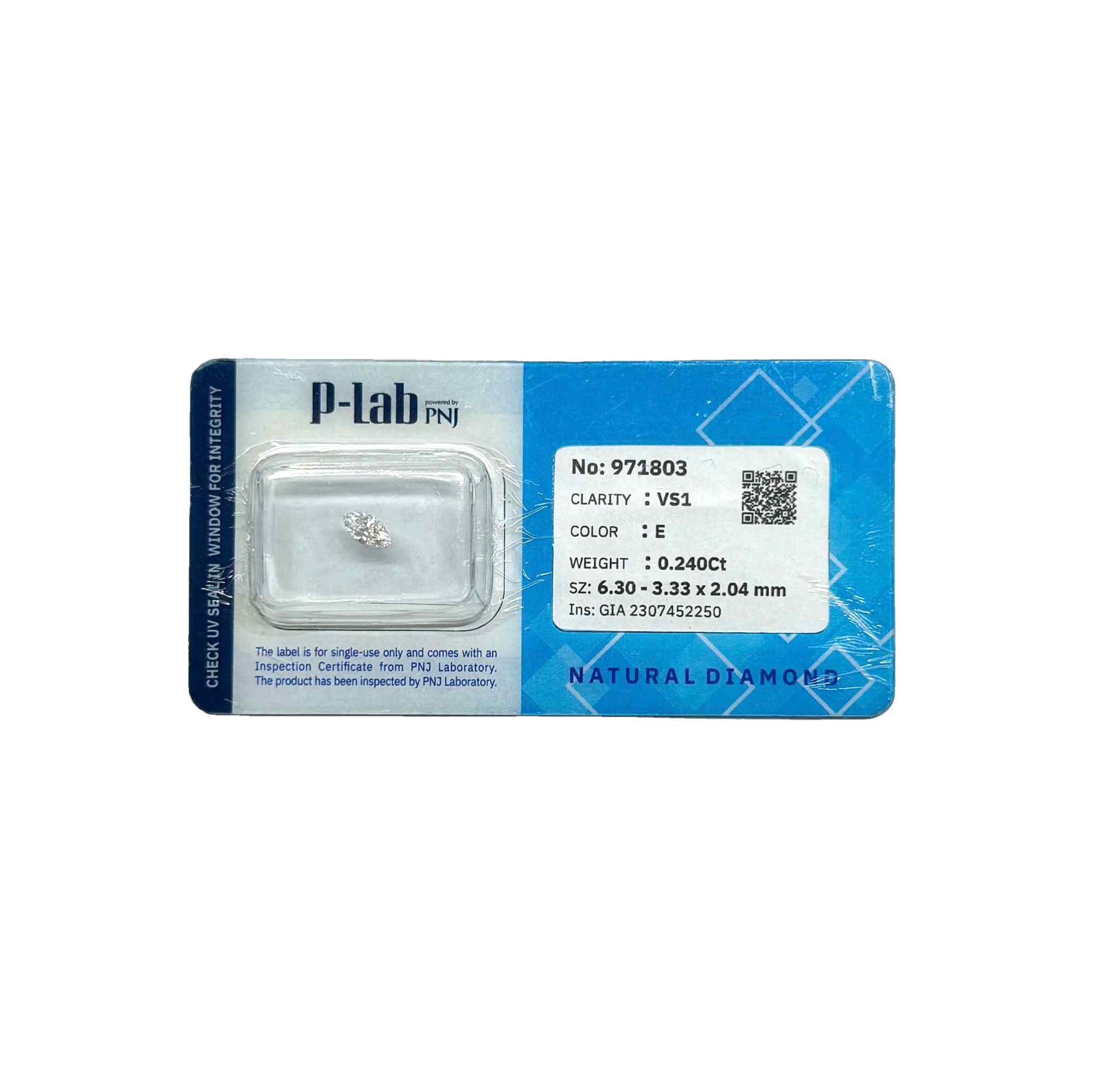 Viên kim cương MARQUISE 6.3–3.3LY E/VS1 sở hữu sắc trắng cao và độ tinh khiết đẹp, cho ánh sáng rõ và sắc nét. Dáng marquise thon dài tạo hiệu ứng viên đá trông lớn hơn. Phù hợp chế tác nhẫn solitaire, nhẫn dáng dài hoặc mặt dây chuyền, với thiết kế chấu thanh mảnh giúp viên chủ nổi bật.