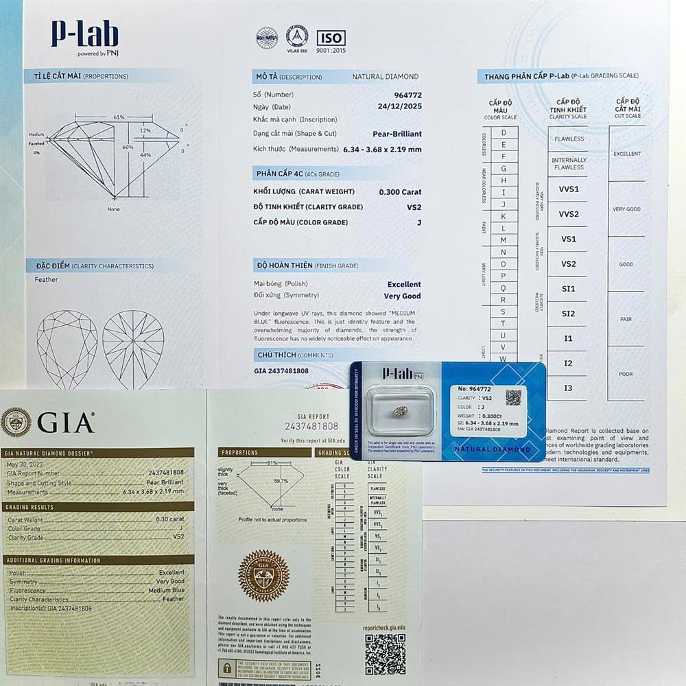 Viên kim cương dáng giọt 6.3–3.6LY mang vẻ đẹp mềm mại và thanh thoát, tạo hiệu ứng thon dài khi đeo. Sắc J ấm nhẹ đem lại cảm giác cổ điển, dễ phối cùng vàng hoặc vàng hồng. Độ tinh khiết VS2 đảm bảo ánh lửa ổn định, phù hợp chế tác nhẫn hoặc mặt dây tinh tế, giàu điểm nhấn.