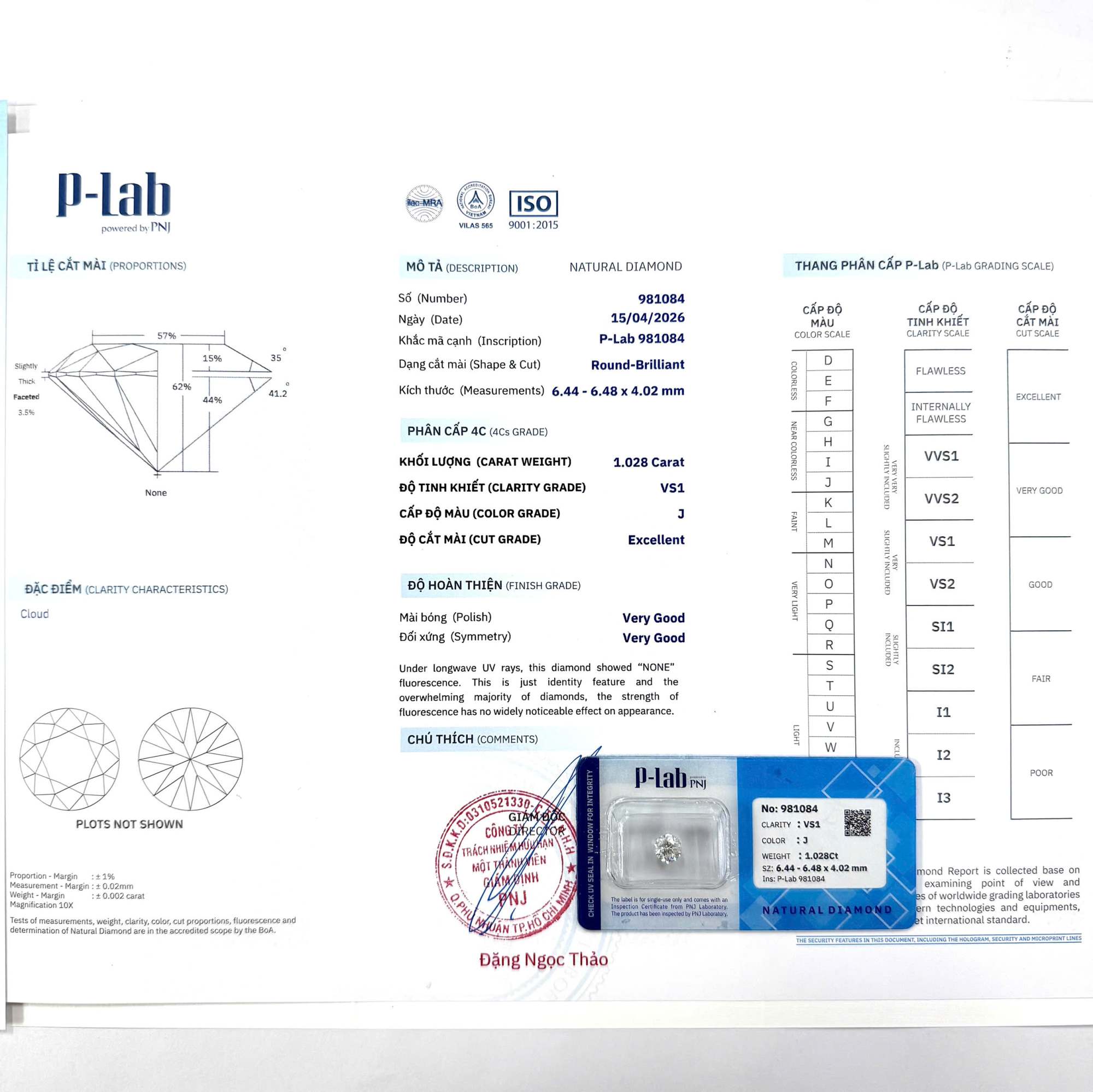 Kim cương viên 6.44 – 6.48 J VS1 P-LAB DDD4017447