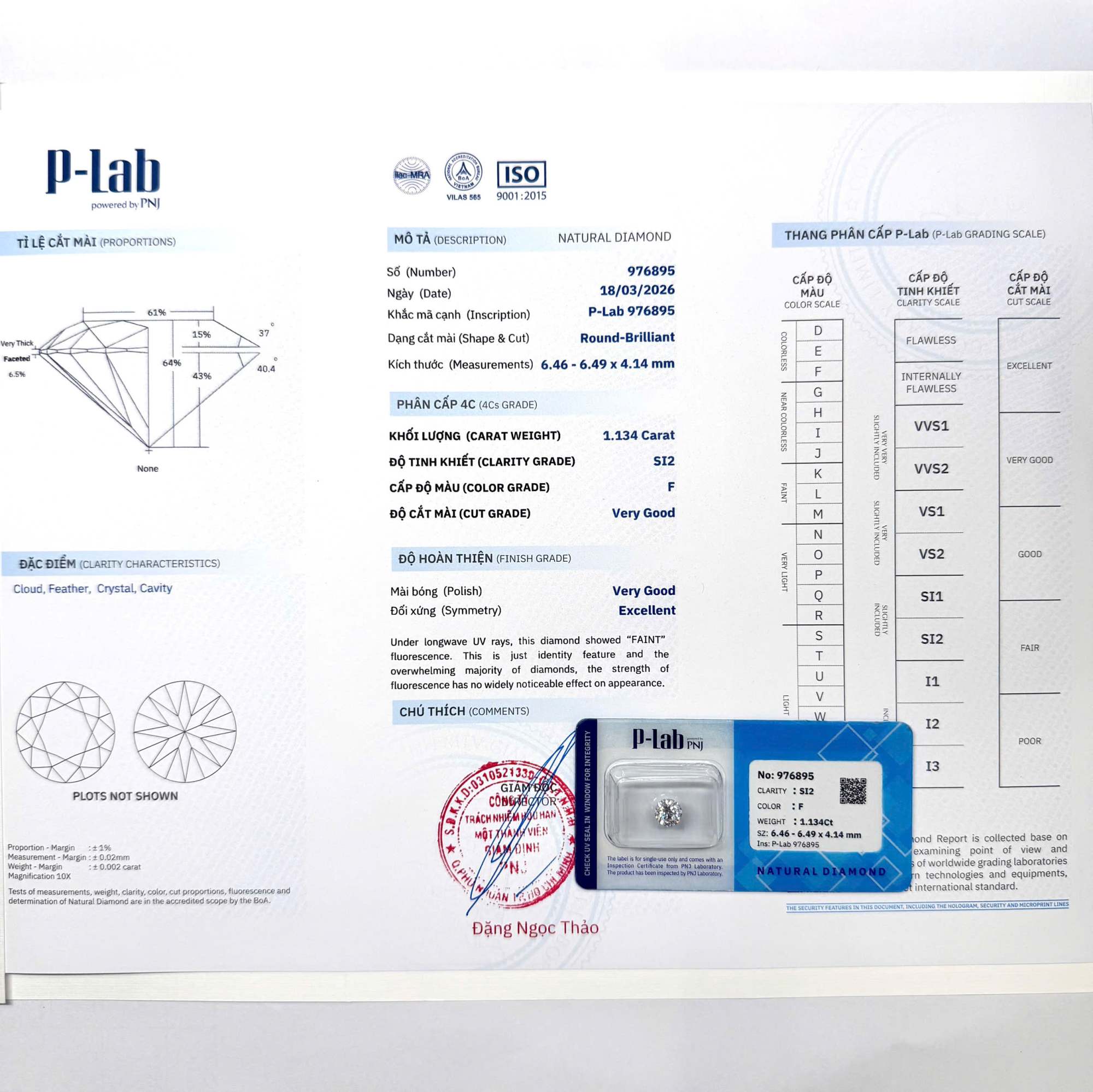 Viên kim cương 6.4LY sở hữu kích thước lớn, nổi bật và thu hút ngay từ ánh nhìn đầu tiên, tạo hiệu ứng lấp lánh ấn tượng khi chế tác trang sức. Sắc F thuộc nhóm trắng cao cấp, mang lại vẻ sáng trong và rực rỡ tự nhiên. Độ tinh khiết SI2 vẫn đảm bảo độ trong ở mức khá, giúp ánh lửa tỏa sáng và bắt mắt. Tổng thể viên đá toát lên vẻ đẹp nổi bật, sang trọng và đầy cuốn hút.