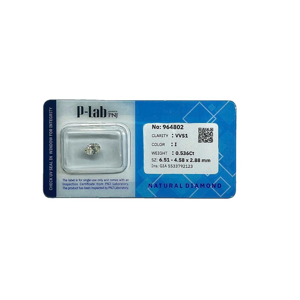 Viên kim cương dáng oval 6.5–4.5LY mang sắc I dịu nhẹ, tạo độ sáng tự nhiên và cảm giác hài hòa khi nhìn. Độ tinh khiết VVS1 gần như hoàn hảo giúp viên đá rất sạch, ánh lửa phản xạ rõ nét và ổn định. Dáng oval tôn vẻ thon dài, phù hợp chế tác nhẫn hoặc mặt dây thanh lịch, tinh tế và sang trọng.