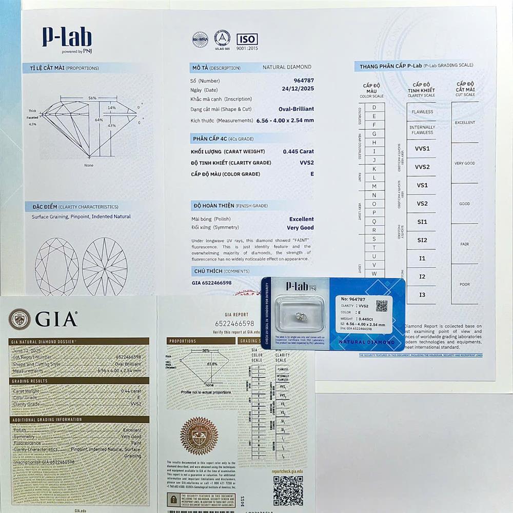 Viên kim cương dáng oval 6.5–4.0LY sở hữu sắc trắng E tinh tế, mang độ sáng trong và vẻ đẹp thanh khiết. Độ tinh khiết VVS2 giúp bề mặt rất sạch, ánh lửa phản xạ rõ ràng và ổn định. Dáng oval tạo hiệu ứng thon dài, làm viên chủ nổi bật, phù hợp chế tác nhẫn hoặc mặt dây phong cách cao cấp, sang trọng.