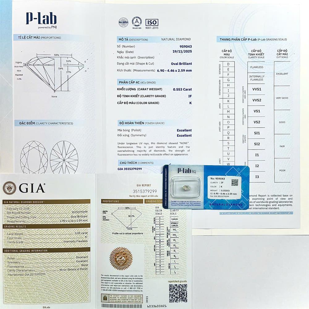 Viên kim cương Oval 6.9*4.4LY K/IF mang sắc ấm nhẹ đặc trưng, kết hợp độ tinh khiết hoàn hảo IF tạo nên vẻ đẹp mềm mại nhưng vẫn sang trọng. Dáng Oval thon gọn giúp viên đá trông lớn và nổi bật hơn. Phù hợp chế tác nhẫn solitaire, mặt dây đơn đá hoặc bông tai nụ. Với họa tiết tối giản, sự ấm áp và độ trong hoàn hảo của viên chủ được tôn lên tối đa.