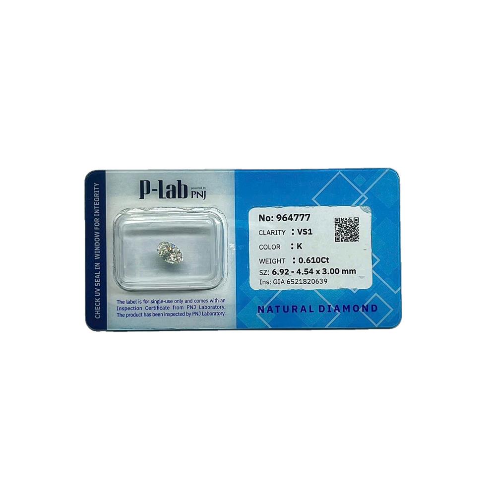 Viên kim cương dáng oval 6.9–4.5LY sở hữu sắc K ấm nhẹ, mang vẻ đẹp mềm mại và dễ phối với nhiều tông kim loại. Độ tinh khiết VS1 cho ánh lửa ổn định, các bao thể rất khó nhận thấy khi quan sát. Dáng oval giúp viên đá trông thon dài và nổi bật, phù hợp chế tác nhẫn hoặc mặt dây thanh lịch.