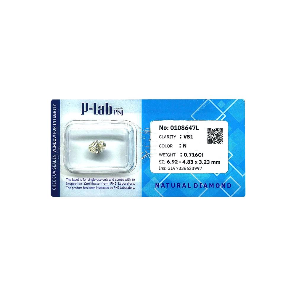 Viên kim cương 6.9*4.8LY N/VS1 mang sắc ánh nhẹ nhàng, ấm áp, gợi cảm giác cổ điển và tinh tế. Phù hợp chế tác nhẫn, mặt dây chuyền hoặc hoa tai mang phong cách thanh lịch. Nên chọn họa tiết tối giản, viền mảnh hoặc đính phụ nhỏ để tôn trọn nét trong sáng và độ lấp lánh tự nhiên của viên chủ.