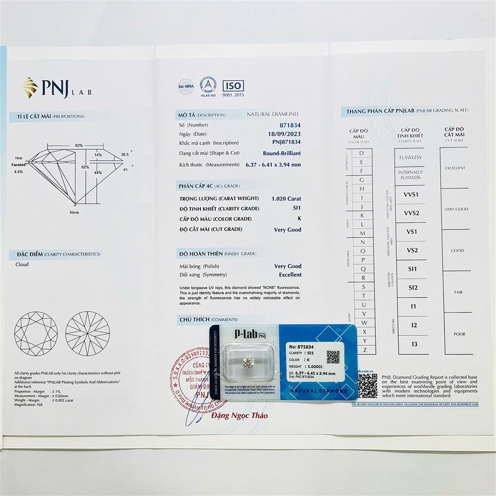Viên kim cương 6.3–6.4LY K/SI1 mang sắc ấm cổ điển và ánh sáng dịu mắt, lý tưởng để chế tác nhẫn vintage, bông tai hoặc mặt dây chuyền thanh lịch. Khi phối cùng họa tiết đơn giản, thiết kế tinh gọn sẽ tôn vinh vẻ ấm áp tự nhiên, làm nổi bật nét sang trọng và cuốn hút gần gũi của viên chủ.