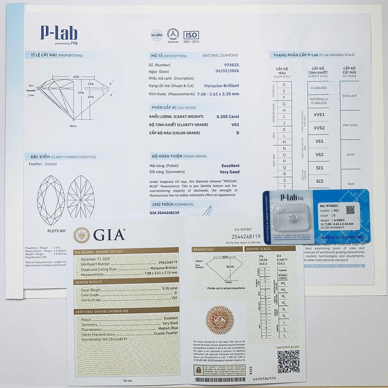Viên kim cương MARQUISE 7.0–3.6LY D/VS1 mang sắc trắng D tinh khiết cùng độ trong cao, tạo nên ánh sáng rực rỡ và sắc nét. Dáng marquise cân đối với hai đầu nhọn đặc trưng giúp viên đá trông thanh thoát và nổi bật trên trang sức. Viên chủ phù hợp chế tác nhẫn đính trung tâm, mặt dây chuyền sang trọng hoặc bông tai thanh lịch với thiết kế tối giản.