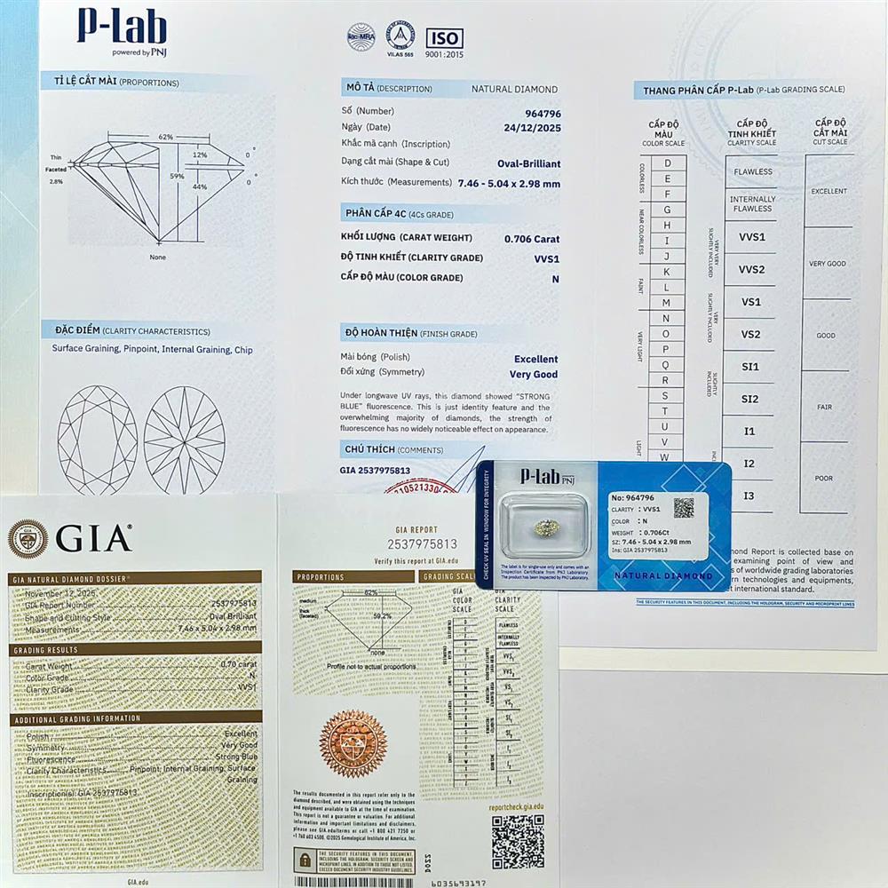 Viên kim cương dáng Oval 7.4–5.0LY N/VVS1 mang vẻ đẹp trầm ấm và rất riêng, nổi bật với sắc N tự nhiên ánh champagne nhẹ đầy cuốn hút. Tông màu này tạo cảm giác sang trọng, cổ điển nhưng không kém phần thời thượng, đặc biệt được ưa chuộng trong các thiết kế trang sức phong cách châu Âu. Độ tinh khiết VVS1 đảm bảo viên đá cực kỳ sạch, ánh lửa đều và trong, giúp tổng thể viên kim cương vẫn rực rỡ dù mang sắc màu trầm. Dáng Oval mềm mại, cân đối, tạo hiệu ứng viên đá lớn hơn kích thước thực và tôn tay rõ rệt – rất phù hợp cho nhẫn đeo hàng ngày hoặc trang sức cao cấp mang dấu ấn cá nhân.