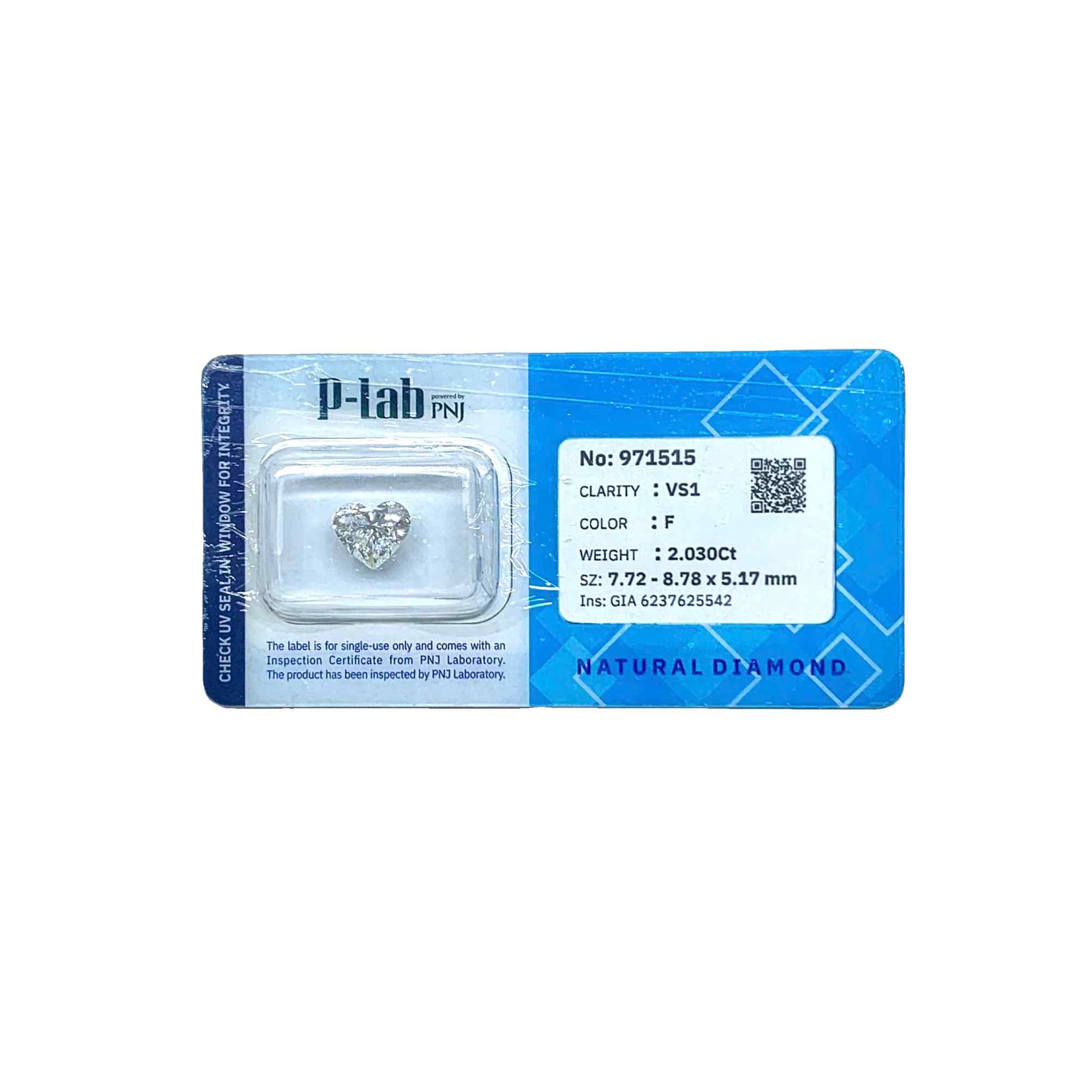 Viên kim cương HEART 8.7–7.7LY F/VS1 sở hữu sắc trắng thanh lịch cùng độ tinh khiết đẹp, toát lên vẻ lãng mạn và tinh tế. Dáng trái tim cân đối tạo điểm nhấn nổi bật. Phù hợp chế tác nhẫn, mặt dây chuyền hoặc bông tai. Thiết kế tối giản giúp tôn trọn ánh sáng và đường nét của viên chủ.