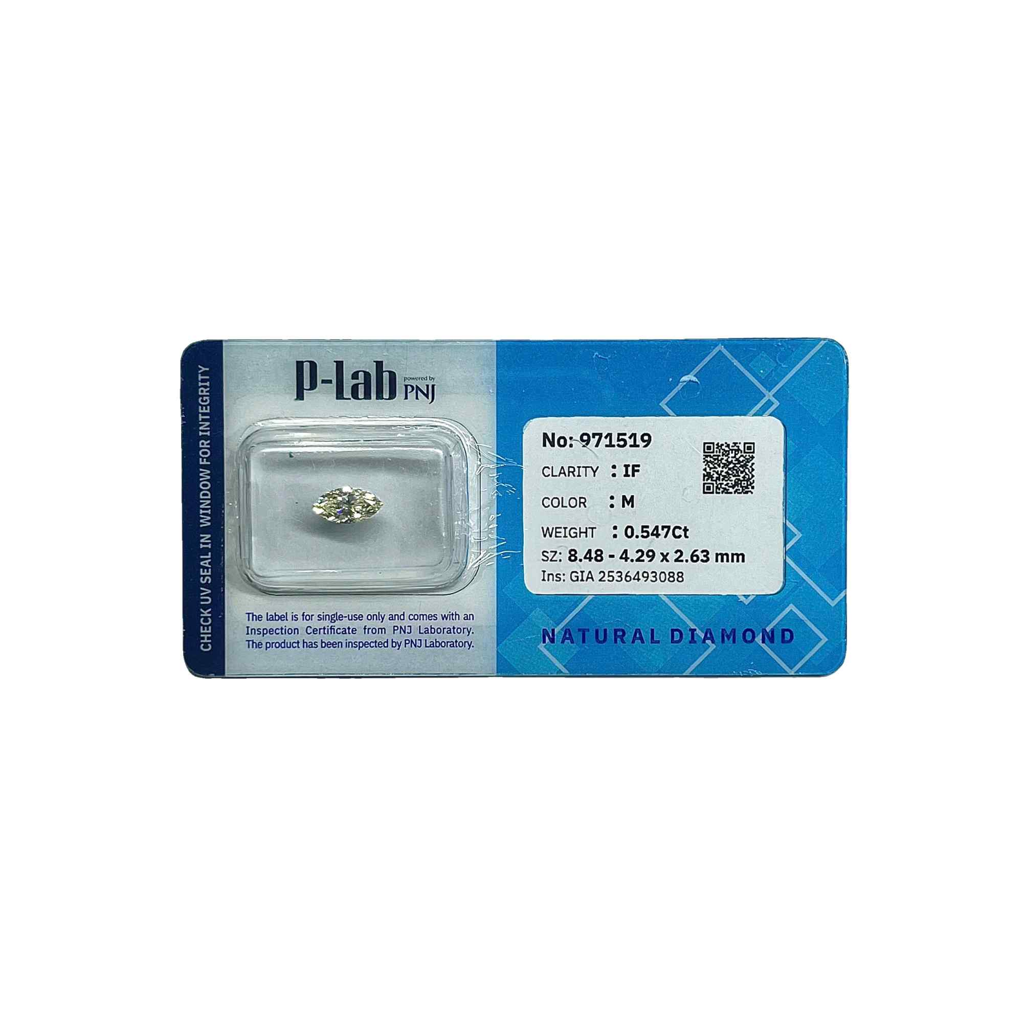 | Trọng lượng: | 0.547Ct |