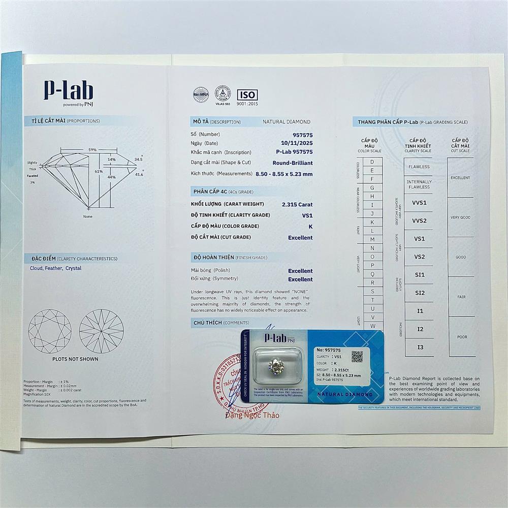 Kim cương viên 8.50 – 8.55 K VS1 P-LAB DDD4013225