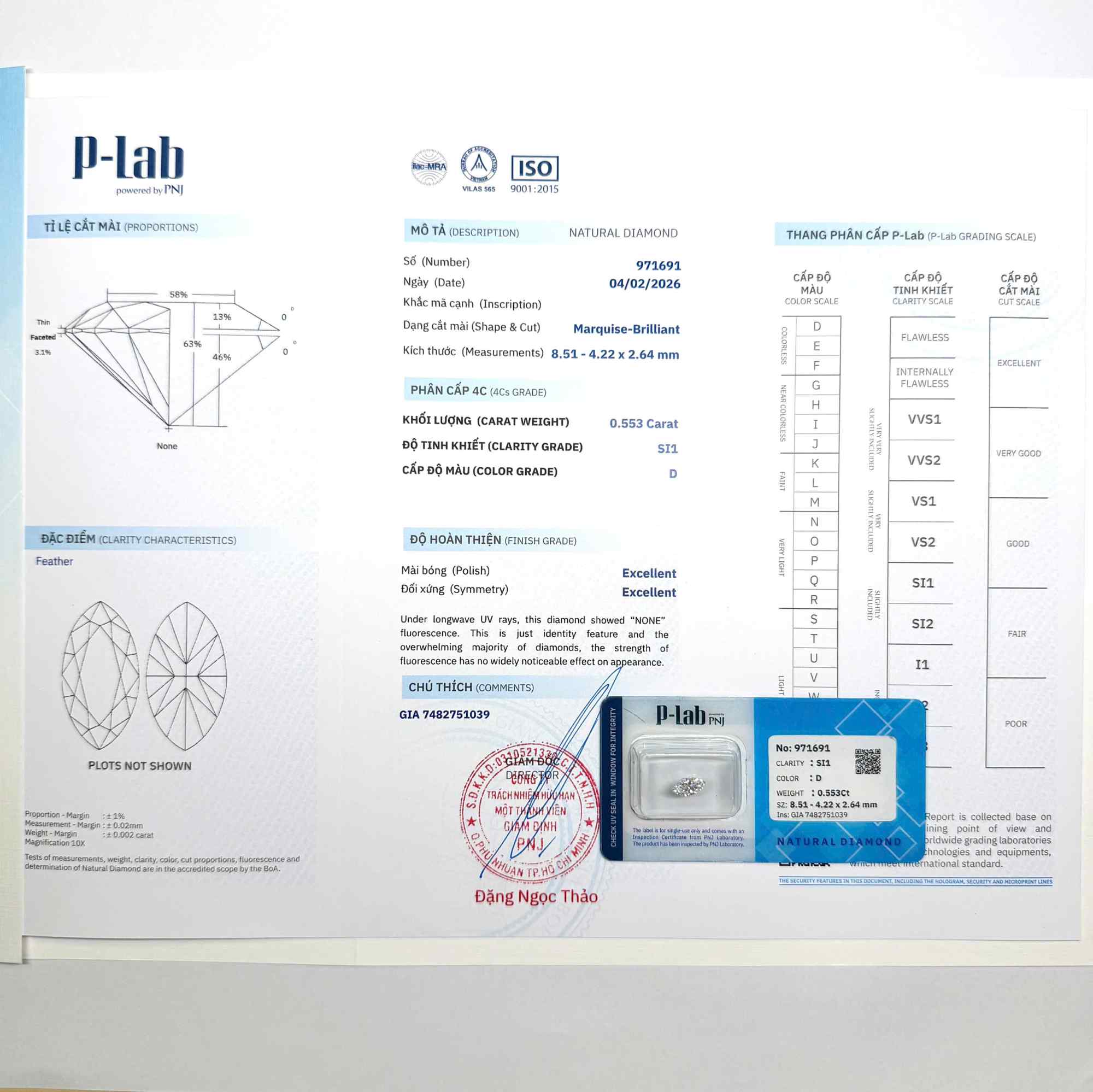 Kim cương viên 8.51 – 4.22 D SI1 P-LAB DDD4014236