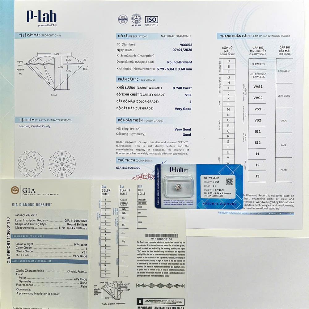 Viên kim cương 5.7-5.8LY sắc I sở hữu ánh trắng ngà dịu mắt, mang vẻ đẹp tự nhiên và thanh lịch. Độ tinh khiết VS1 đảm bảo độ trong rõ ràng, ánh lửa mềm mại nhưng vẫn nổi bật. Phù hợp chế tác nhẫn chủ hoặc mặt dây tối giản, tôn lên phong thái tinh tế và gu thẩm mỹ bền vững.
