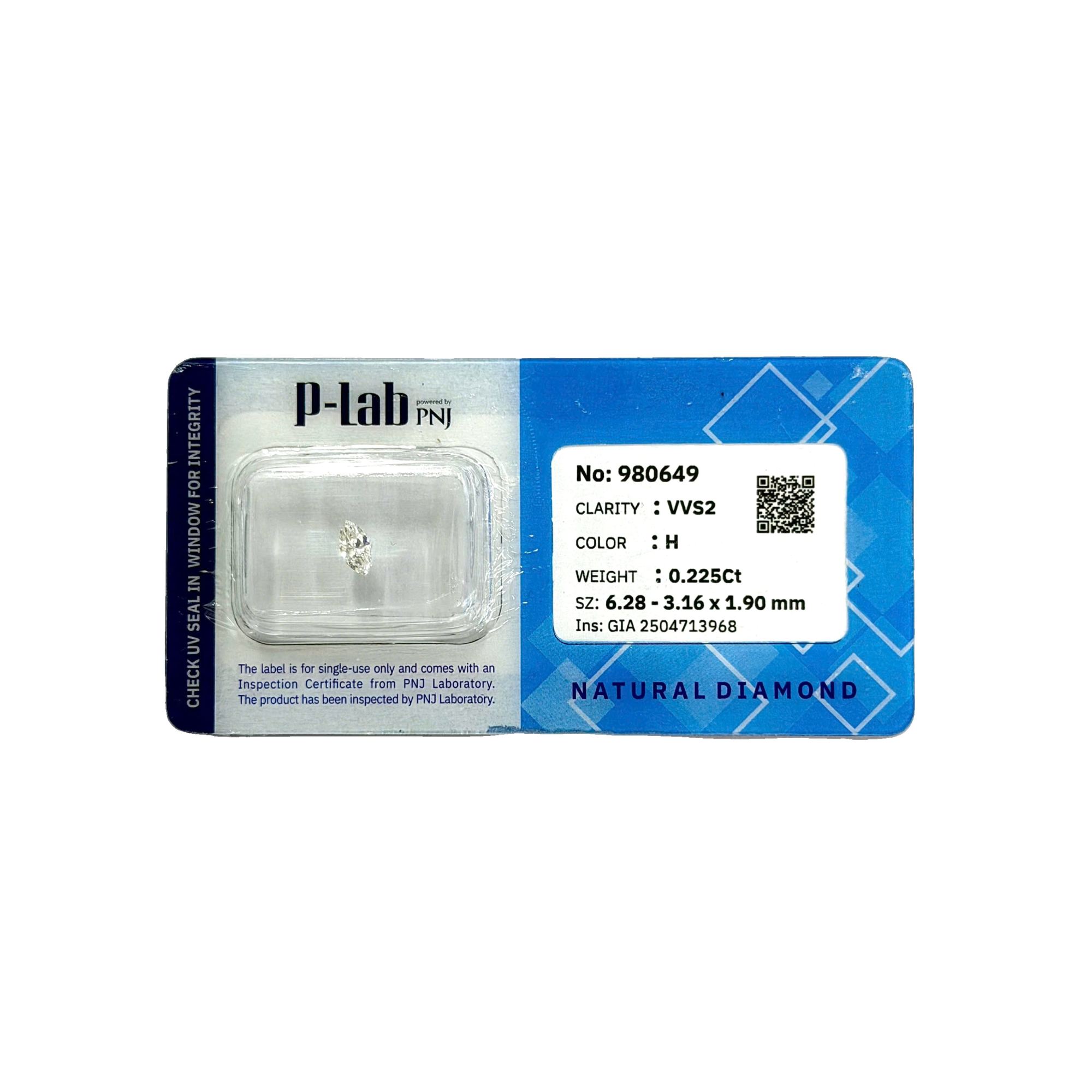 Viên kim cương MARQUISE 6.2–3.1LY H/VVS2 sở hữu dáng thoi thanh mảnh, hai đầu nhọn tạo hiệu ứng kéo dài và tôn dáng tay thanh thoát. Sắc trắng hơi ấm kết hợp độ tinh khiết cao mang lại ánh sáng lấp lánh mềm mại nhưng vẫn sang trọng. Phù hợp chế tác nhẫn, mặt dây chuyền hoặc hoa tai, nên chọn thiết kế tinh giản để làm nổi bật viên chủ.