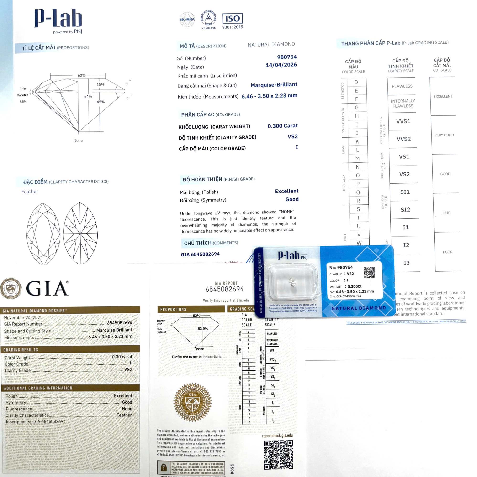 Viên kim cương MARQUISE 6.4–3.5LY I/VS2 sở hữu tỷ lệ dài thanh thoát, hai đầu nhọn tạo hiệu ứng thon tay rõ nét và hiện đại. Sắc trắng ấm nhẹ kết hợp độ tinh khiết khá mang đến ánh sáng mềm mại, dễ chịu. Phù hợp chế tác nhẫn, mặt dây chuyền hoặc hoa tai, nên chọn thiết kế tinh giản để tôn lên form dáng đặc trưng.