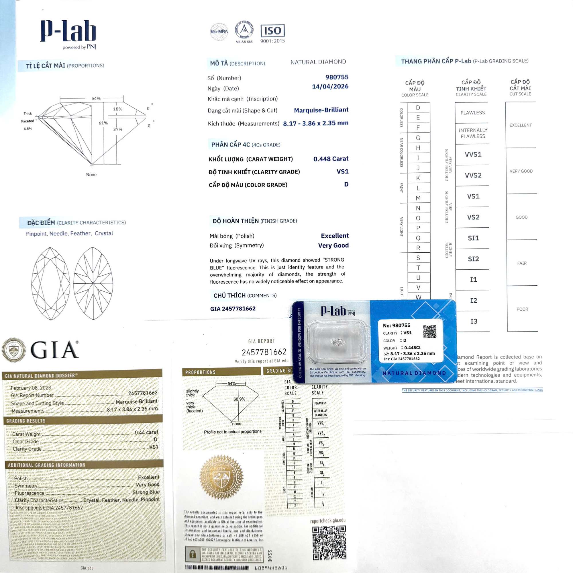 Viên kim cương MARQUISE 8.1–3.8LY D/VS1 sở hữu tỷ lệ dài cân đối, đường nét sắc sảo giúp tạo hiệu ứng kéo dài và tôn dáng tay thanh mảnh. Sắc trắng tinh khiết kết hợp độ tinh khiết tốt mang đến ánh sáng lấp lánh rõ nét, sang trọng. Phù hợp chế tác nhẫn nổi bật, mặt dây chuyền hoặc hoa tai, ưu tiên thiết kế tối giản để tôn lên vẻ đẹp viên chủ.