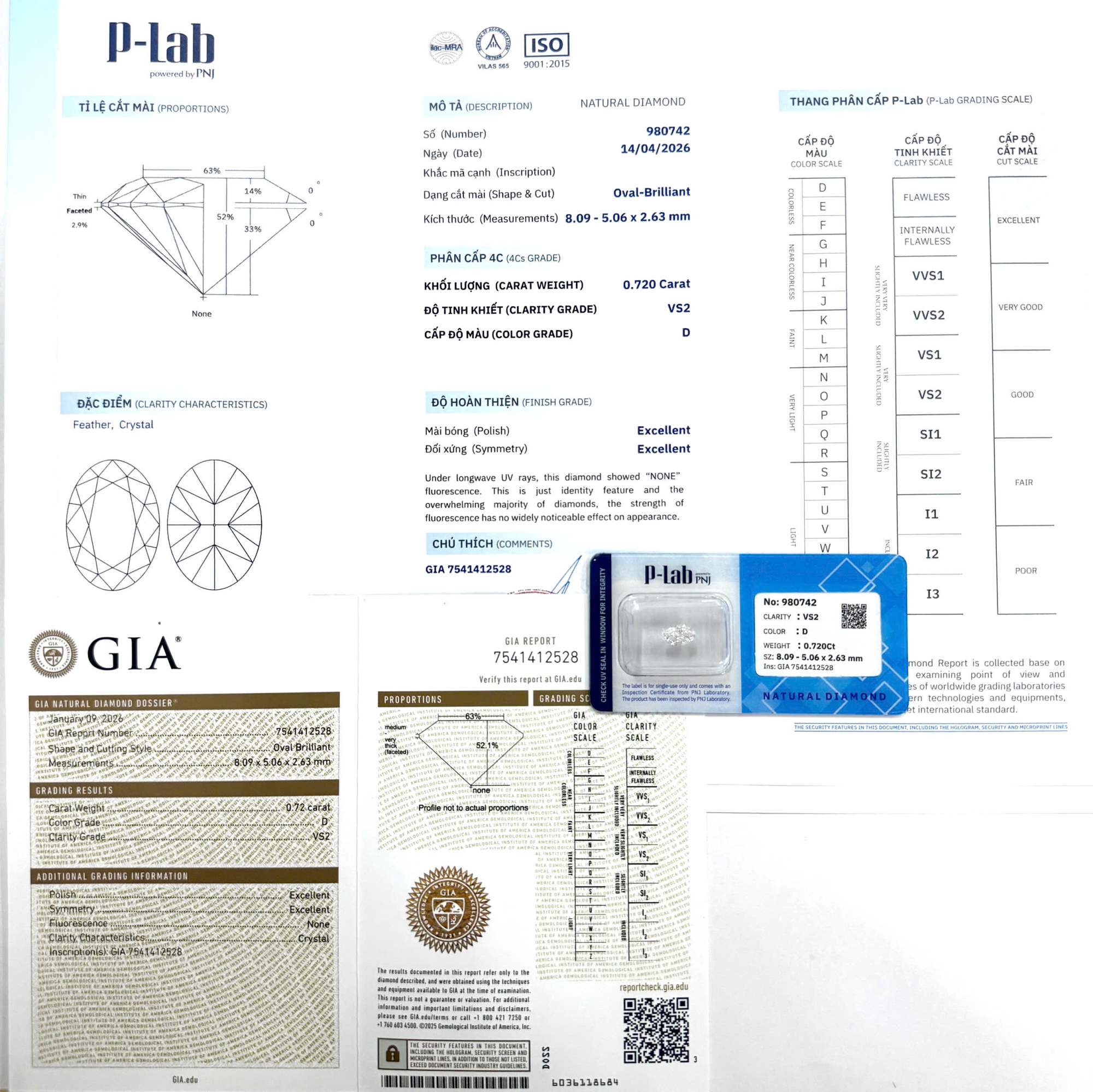 Kim cương viên Oval 8.09 – 5.06 D VS2 P-LAB, GIA DDD0028664