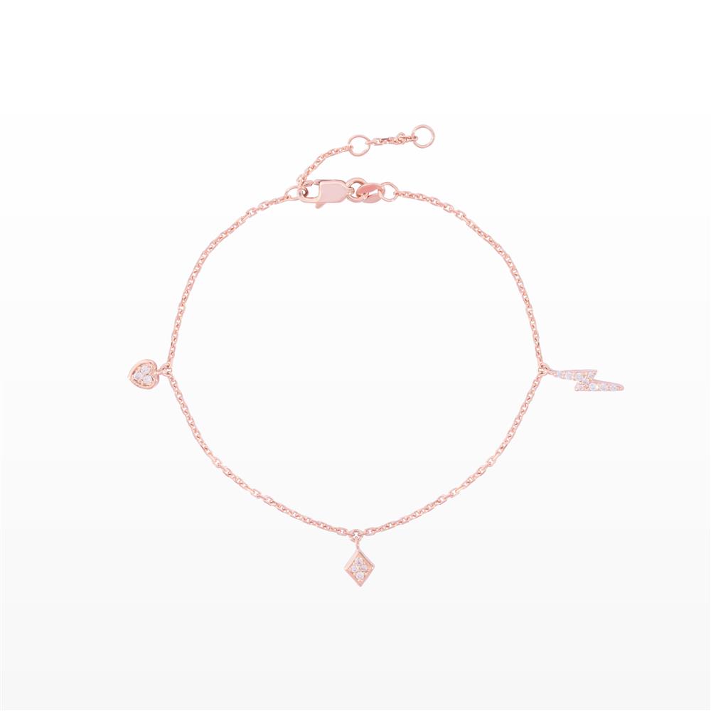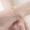 Mỗi charm đính đá lấp lánh đung đưa nhẹ theo từng chuyển động, như những điểm sáng nhỏ tô thêm nét cuốn hút tự nhiên trên cổ tay. Dây mảnh tinh xảo giúp tổng thể càng trở nên nữ tính, sang nhẹ, hợp với mọi phong cách từ đơn giản đến thời thượng.