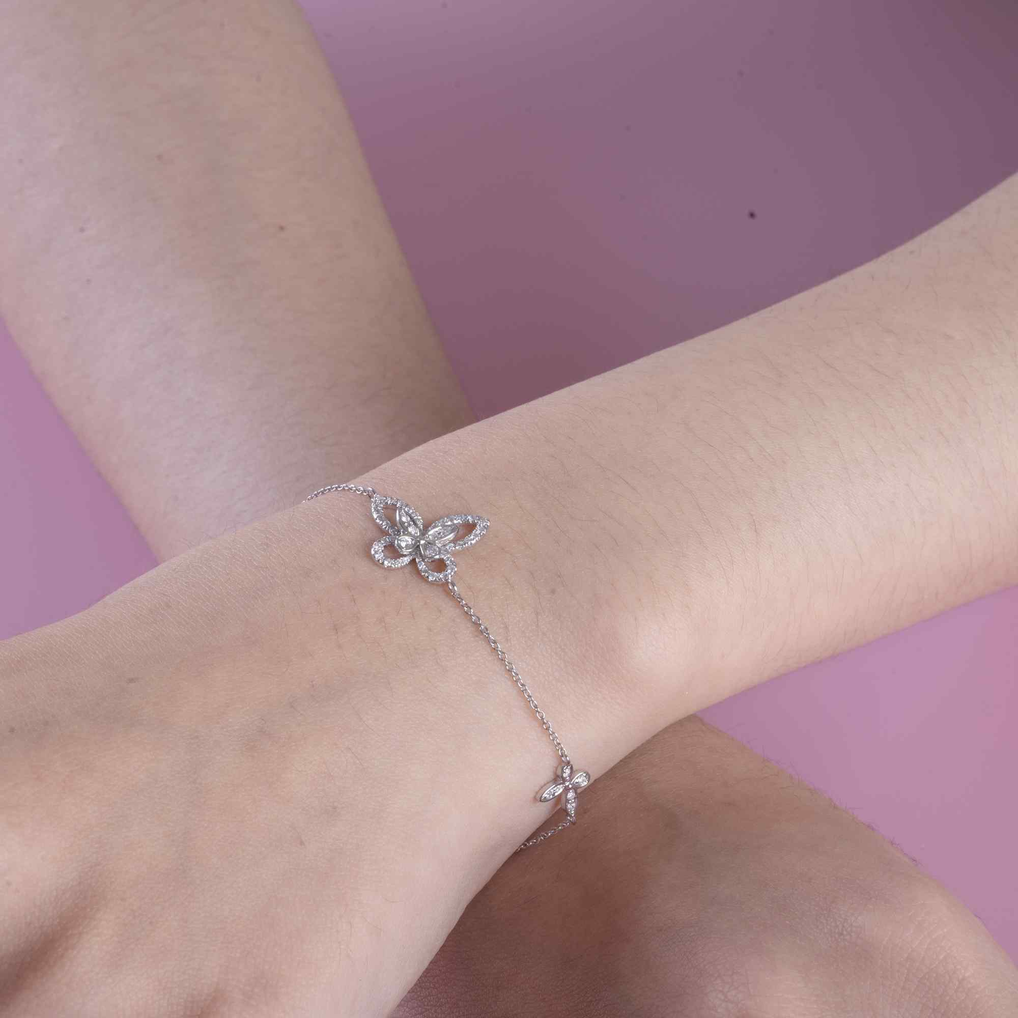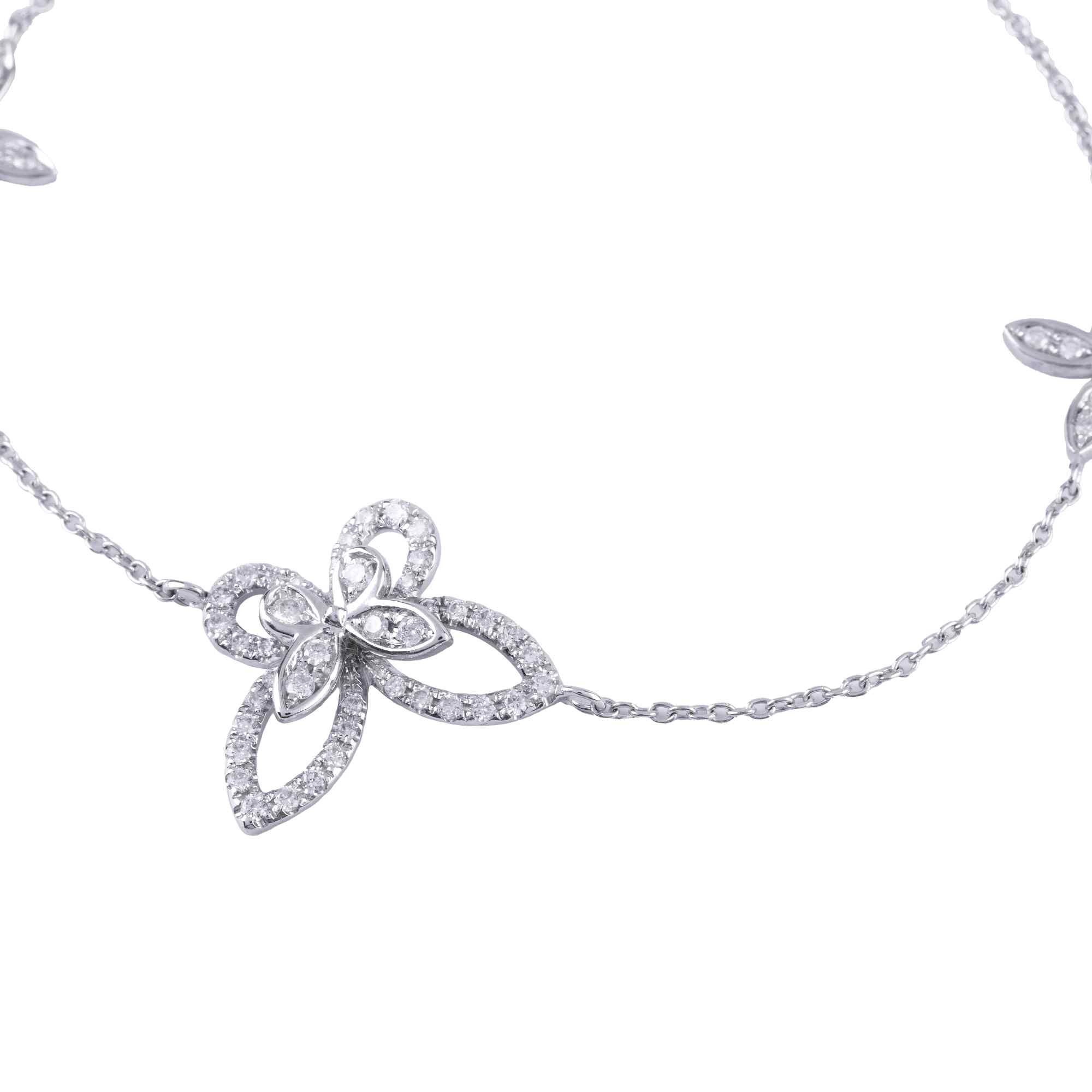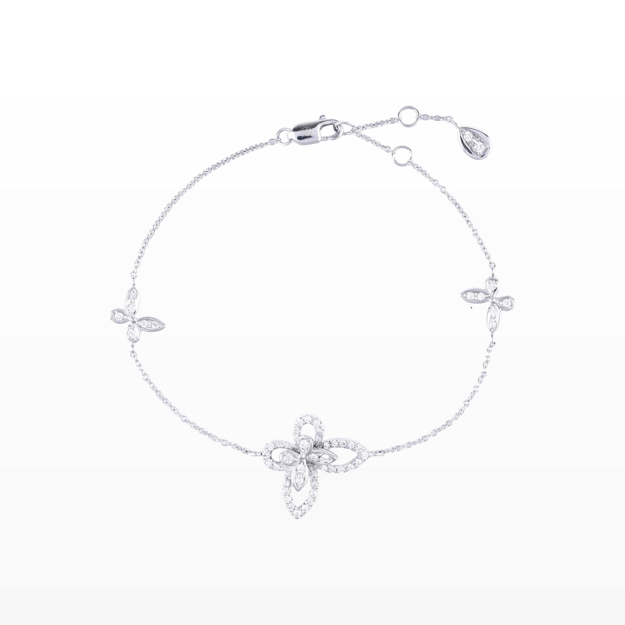 Lắc tay kim cương họa tiết cỏ bốn lá mang vẻ đẹp thanh lịch và tinh tế, lấy cảm hứng từ biểu tượng của may mắn và những điều tốt lành. Thiết kế nhẹ nhàng với các chi tiết cỏ bốn lá đính kim cương tỉ mỉ, tỏa sáng dịu dàng theo từng chuyển động của cổ tay.