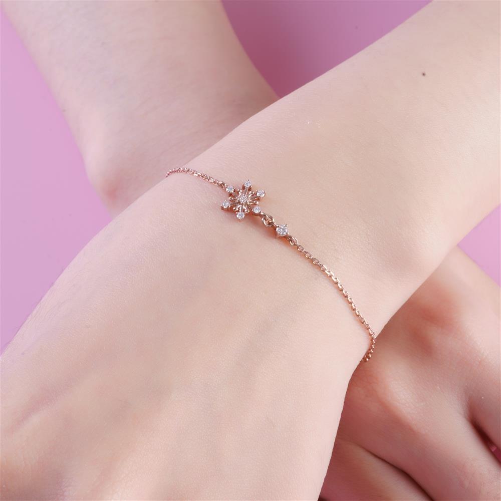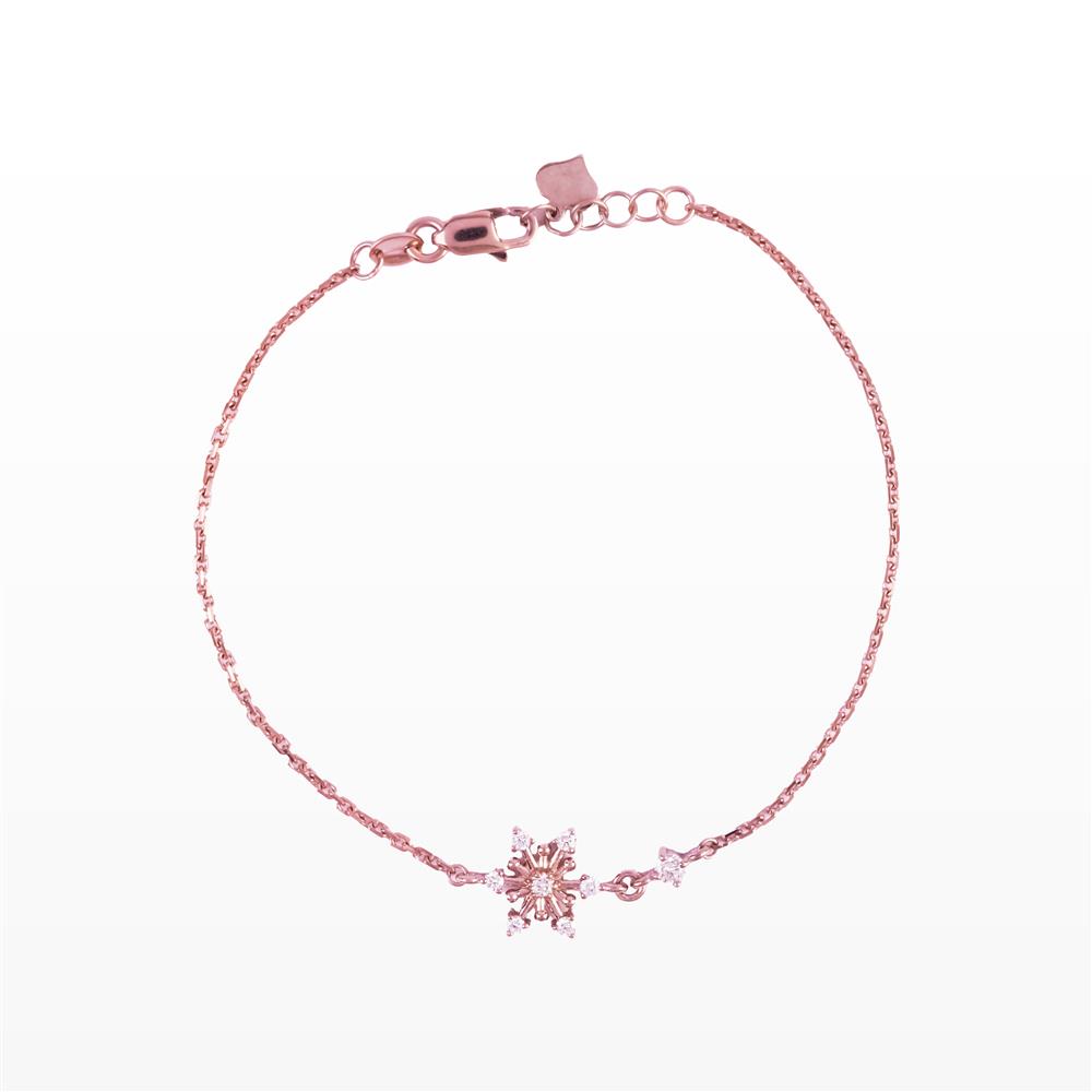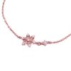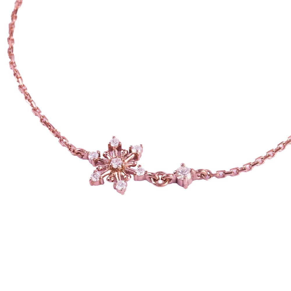 Chiếc dây chuyền vàng hồng đính kim cương tựa như một đóa hoa đang nở nơi cổ, mang theo vẻ đẹp lãng mạn và tinh tế đến từng chi tiết. Ở trung tâm là bông hoa kim cương được tạo hình mềm mại, các cánh hoa ôm trọn viên đá ở lõi, tỏa ra ánh sáng ấm áp như nhịp đập dịu dàng của trái tim.