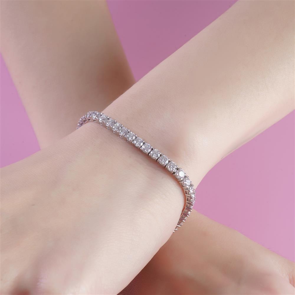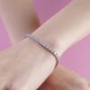 Lắc tay kim cương tennis sở hữu thiết kế chuỗi kim cương liên hoàn, các viên kim cương được đính đều đặn và thẳng hàng, tạo nên hiệu ứng ánh sáng lấp lánh liên tục quanh cổ tay. Mỗi chuyển động đều phản chiếu vẻ đẹp tinh xảo, mang lại cảm giác sang trọng và cuốn hút.