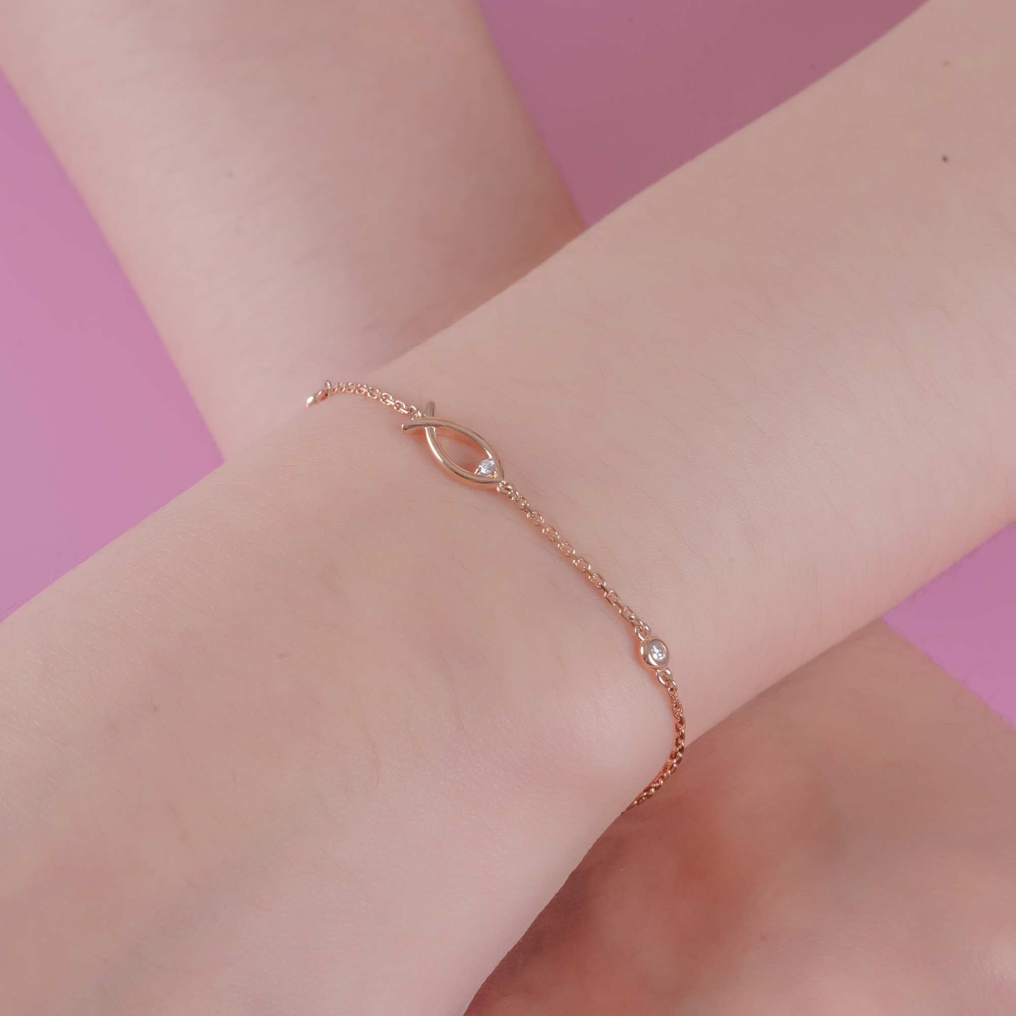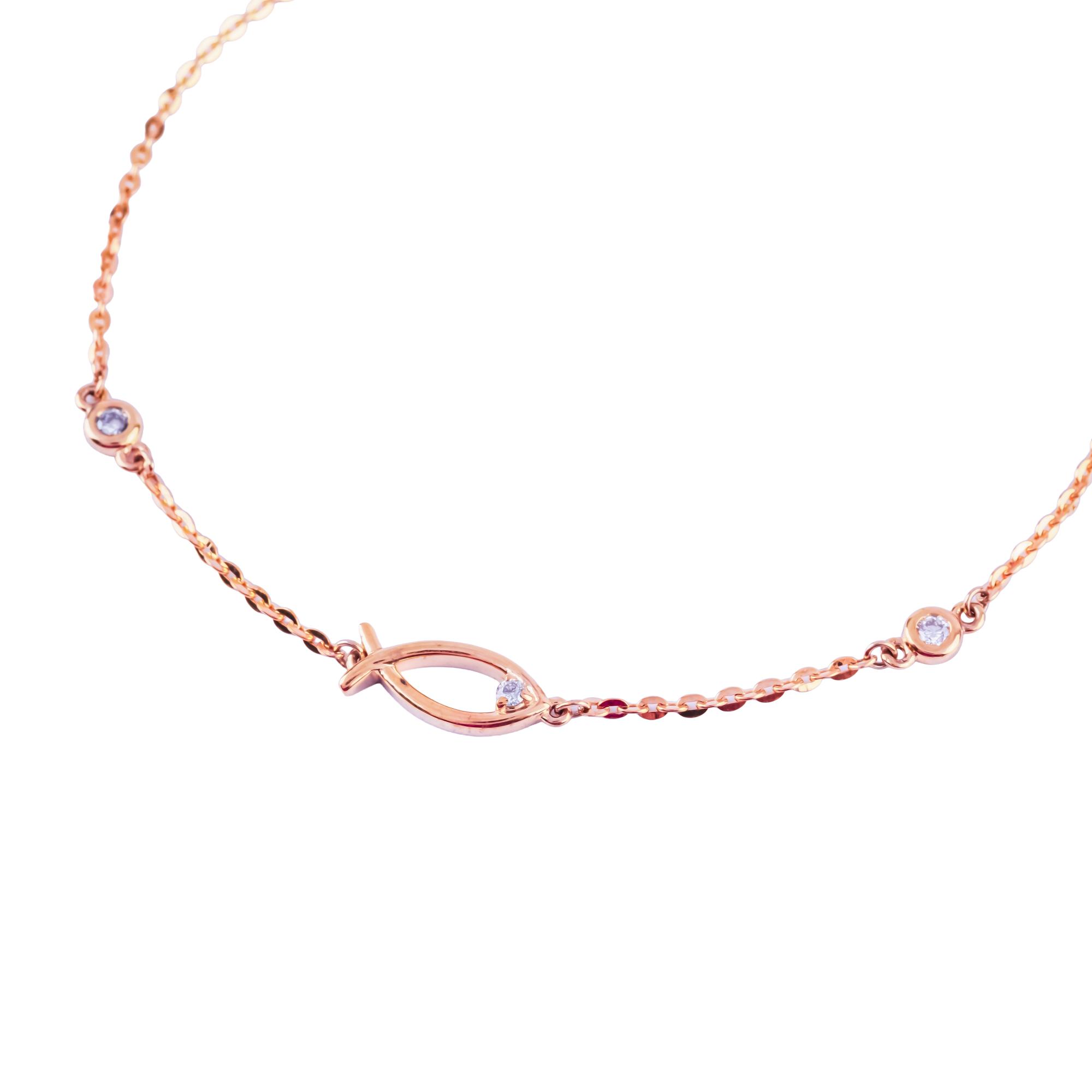 Lắc tay kim cương Ngư Quý thiết kế thanh mảnh với biểu tượng cá ở trung tâm, điểm xuyết các viên kim cương nhỏ hai bên tạo hiệu ứng lấp lánh tinh tế. Hình tượng cá tượng trưng cho may mắn và sung túc, mang đến vẻ đẹp nhẹ nhàng, ý nghĩa khi đeo hằng ngày.