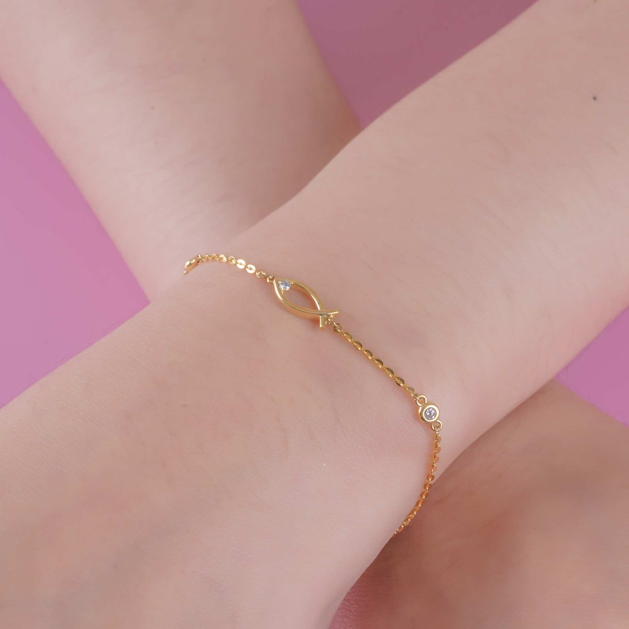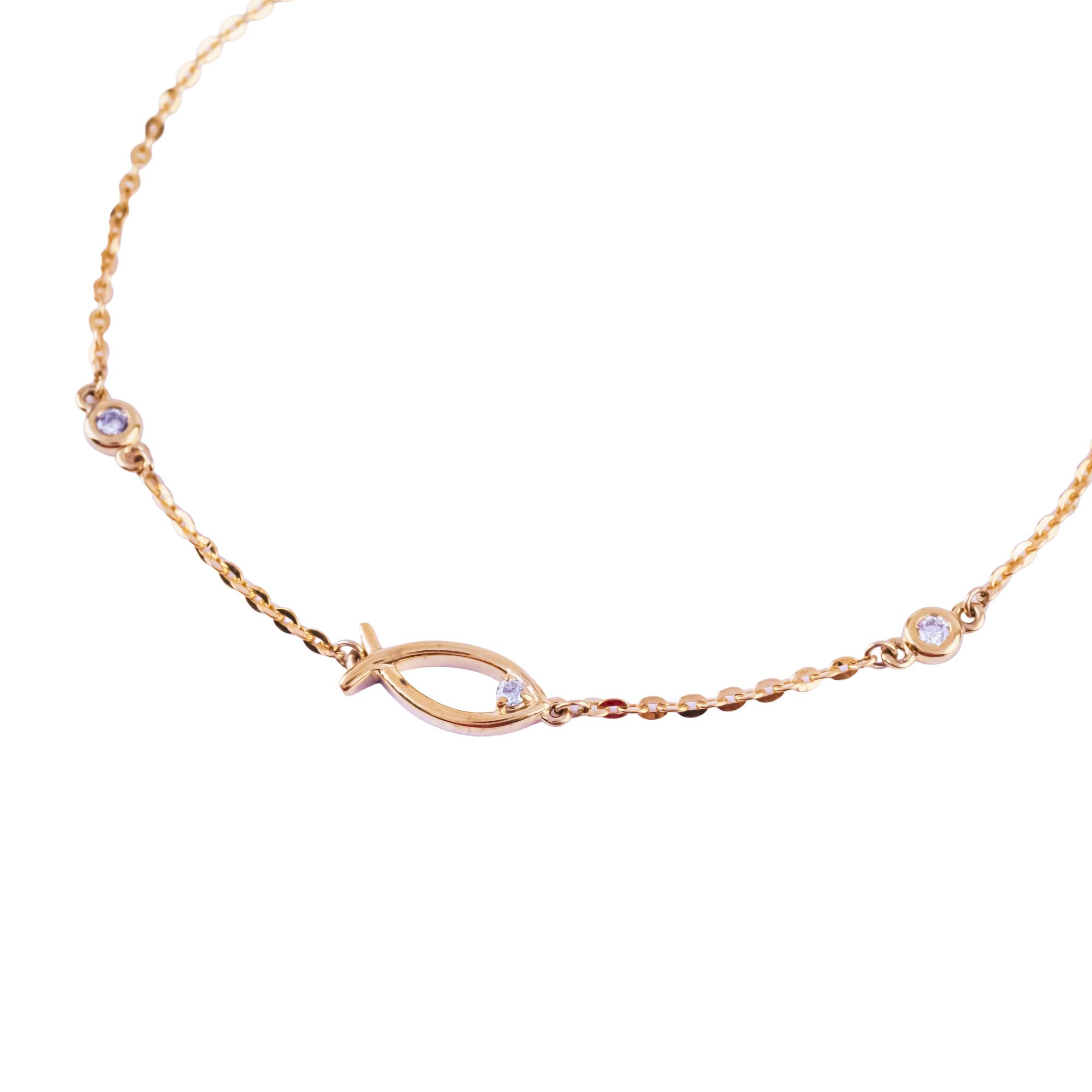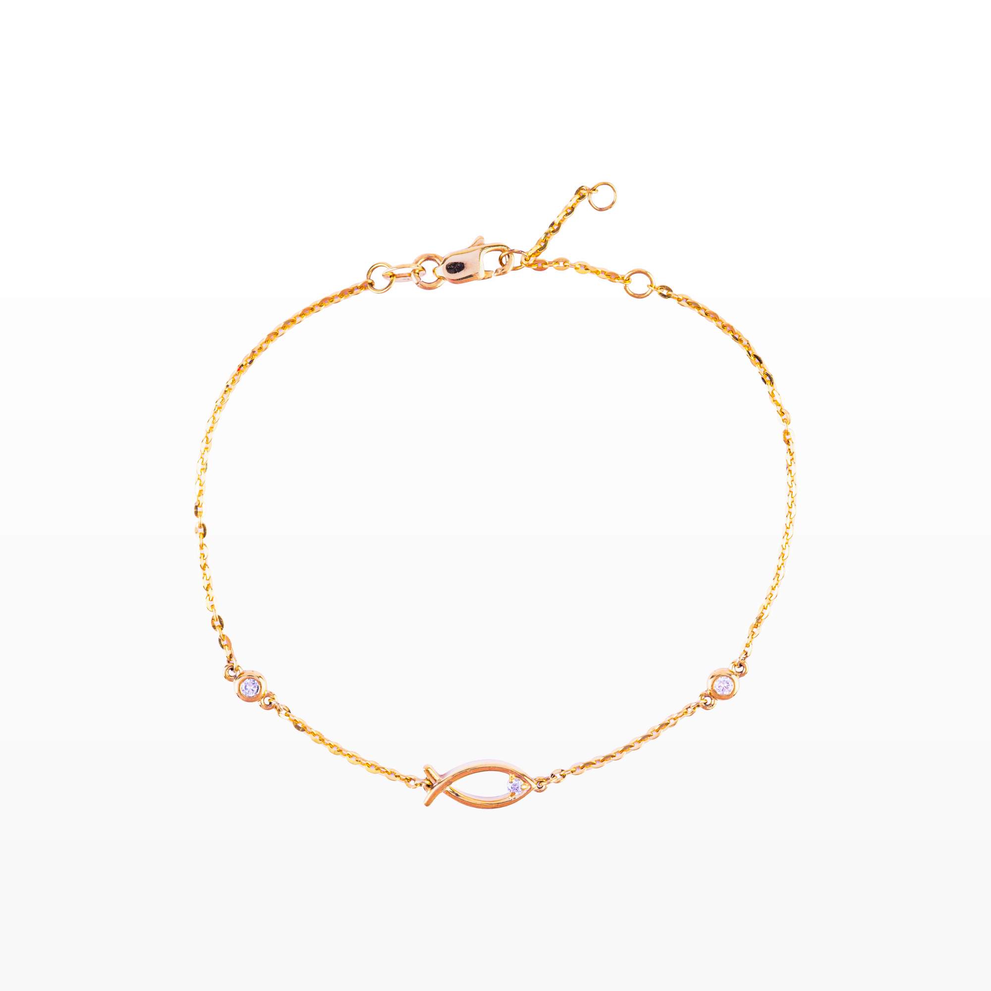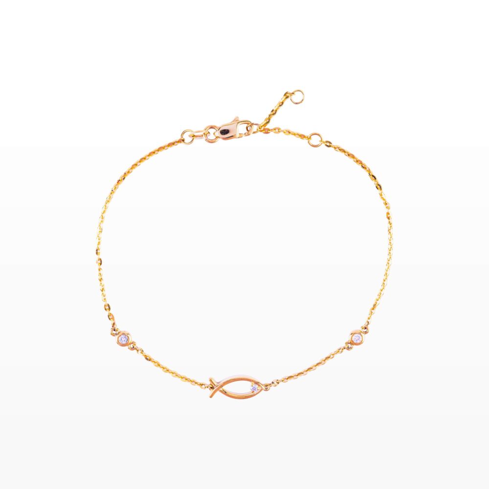 Lắc tay kim cương Ngư Quý thiết kế thanh mảnh với biểu tượng cá ở trung tâm, điểm xuyết các viên kim cương nhỏ hai bên tạo hiệu ứng lấp lánh nhẹ nhàng. Kiểu dáng tinh tế, dễ đeo, mang ý nghĩa may mắn và bình an trong cuộc sống.