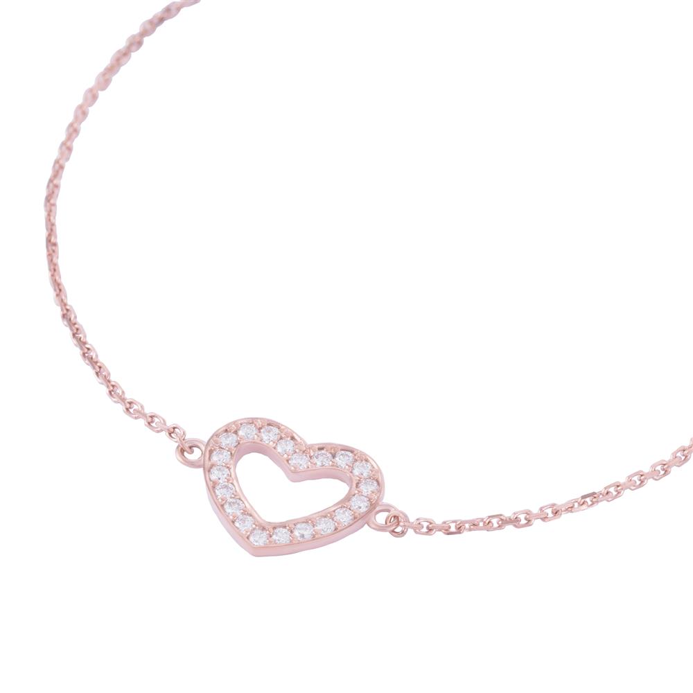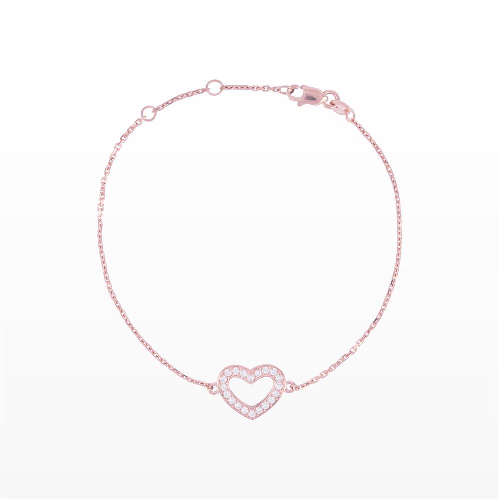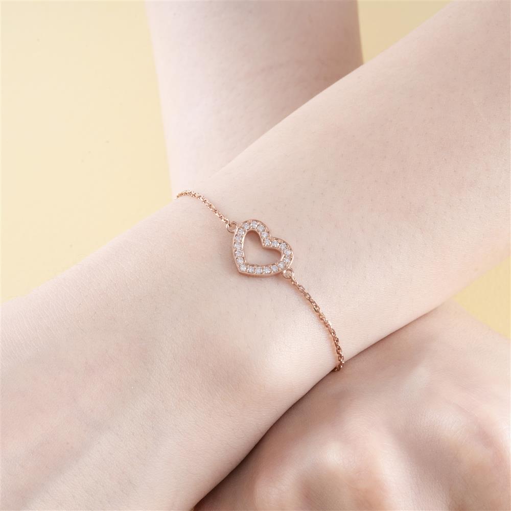 Tỏa sáng tinh tế với thiết kế trái tim lãng mạn, lắc tay vàng hồng sang trọng, đính những viên kim cương lấp lánh tỉ mỉ trên từng đường nét. Kiểu dáng thanh mảnh kết hợp cùng sắc hồng ấm áp mang đến vẻ đẹp ngọt ngào nhưng không kém phần hiện đại, phù hợp cho cả những buổi dạo phố nhẹ nhàng hay các bữa tiệc sang trọng.