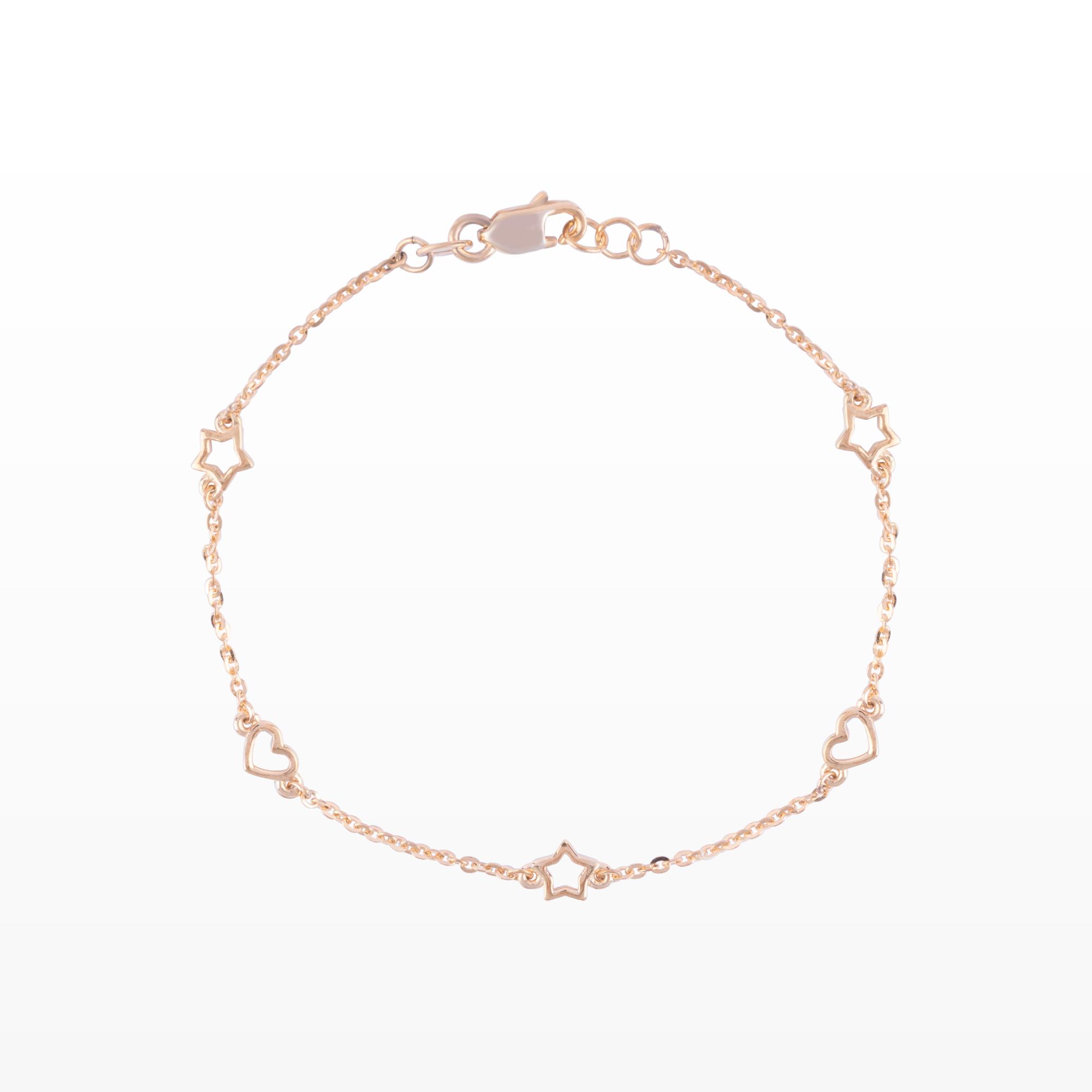 Lắc tay với thiết kế đan xen những biểu tượng trái tim và ngôi sao tinh xảo, mang đến vẻ đẹp lãng mạn và đầy nữ tính.