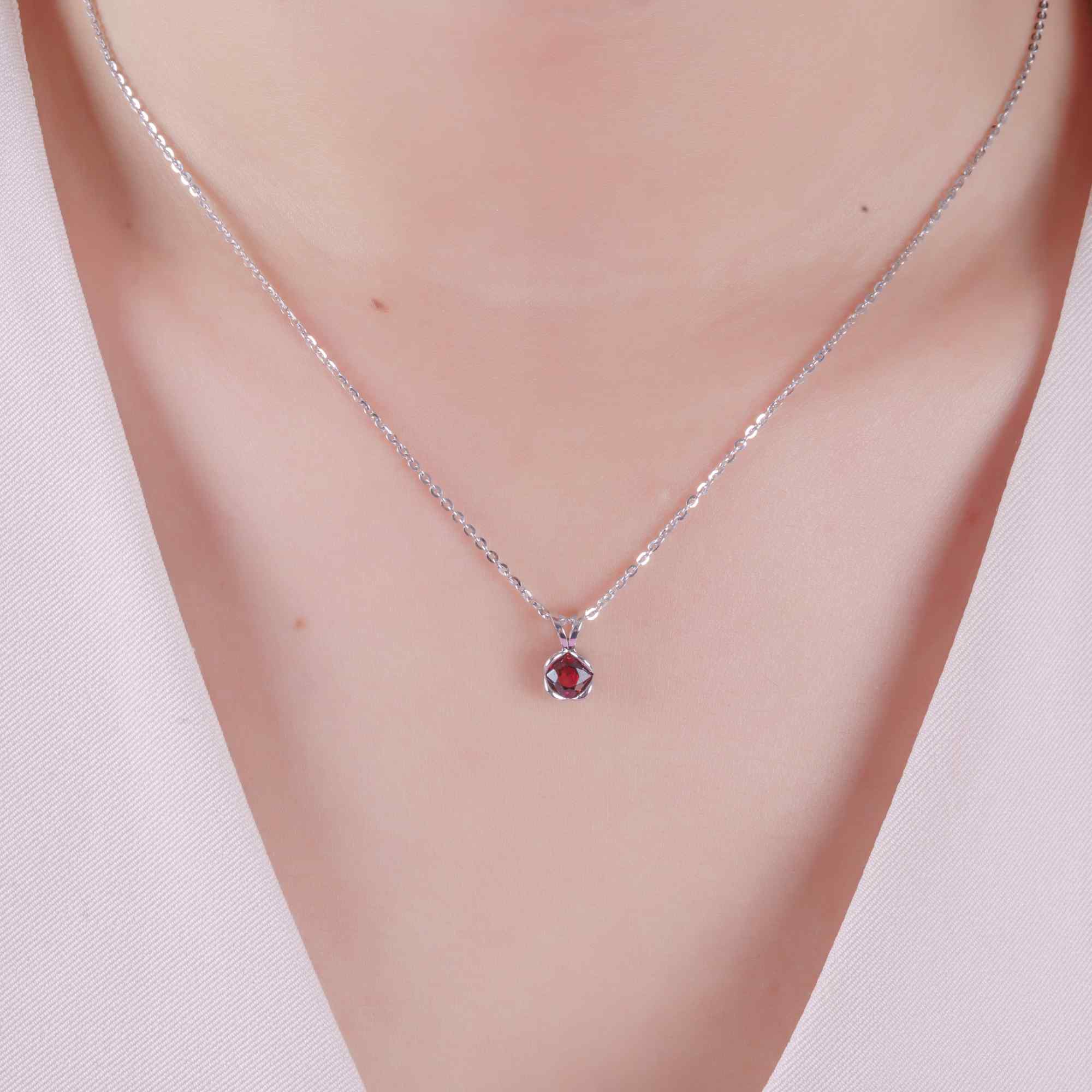 Mặt dây chuyền vàng trắng nổi bật với viên Garnet đỏ sâu đầy cuốn hút, được chế tác tối giản để tôn trọn vẻ đẹp tự nhiên của viên đá. Thiết kế nhỏ gọn, thanh lịch, dễ dàng kết hợp cùng nhiều kiểu dây cổ, mang lại điểm nhấn tinh tế cho phong cách hằng ngày.