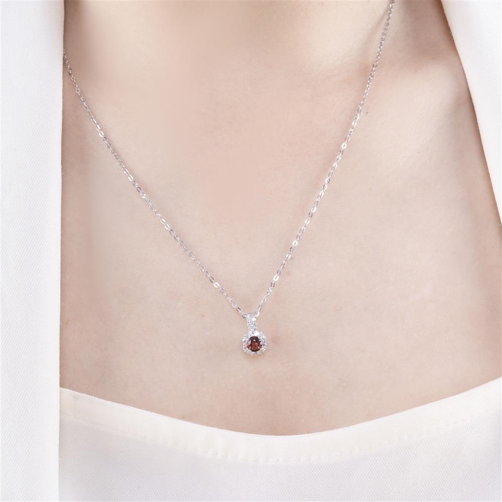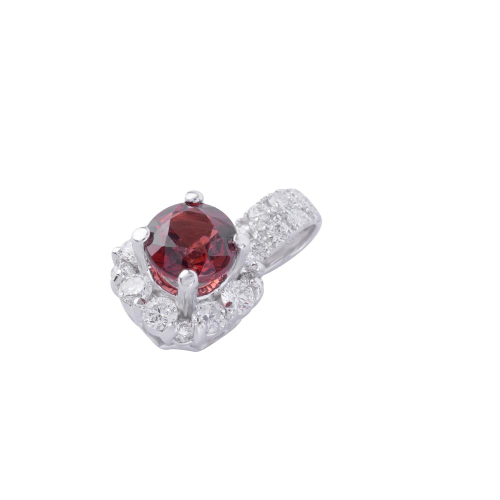 Được viền quanh bởi những viên kim cương trắng lấp lánh, mặt dây chuyền mang vẻ đẹp vừa nồng nàn, vừa thanh lịch — hoàn hảo cho những ai yêu thích sự tinh tế và khác biệt.