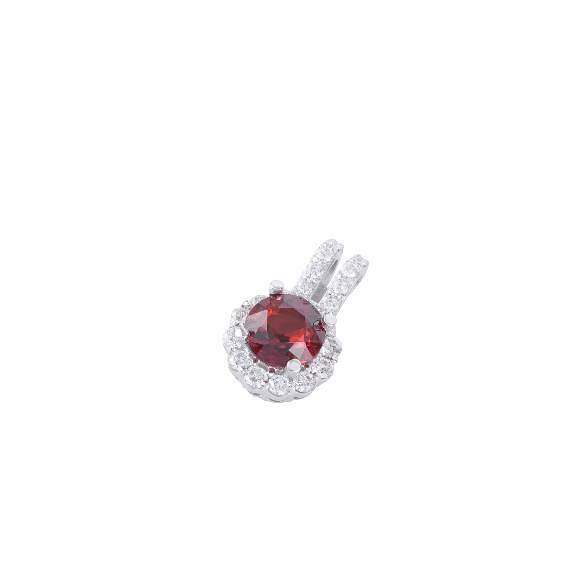 Nổi bật với viên đá đỏ garnet rực rỡ ở trung tâm – sắc màu của tình yêu và năng lượng sống mãnh liệt. Viên đá được bao quanh bởi dải kim cương trắng lấp lánh, tạo hiệu ứng ánh sáng lung linh, tôn lên nét sang trọng và quý phái cho người đeo.