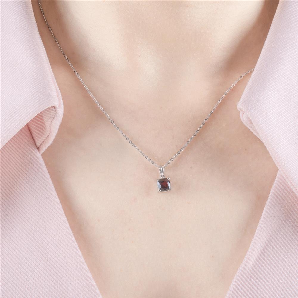 Mặt dây chuyền sở hữu 1 viên Garnet dáng cushion sắc đỏ rượu vang sâu lắng, tượng trưng cho năng lượng, đam mê và sự bền bỉ. Viên đá được đính chấu chắc chắn, tôn lên vẻ đẹp sang trọng và chiều sâu màu sắc tự nhiên.