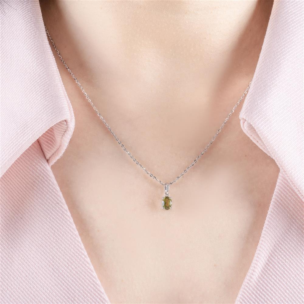 Mặt dây chuyền nổi bật với viên đá màu dáng oval mềm mại, sở hữu sắc xanh nhạt tự nhiên, mang cảm giác tươi sáng và thanh thoát. Kiểu cắt faceted giúp viên đá phản chiếu ánh sáng nhẹ nhàng, tạo hiệu ứng lấp lánh tinh tế khi đeo.