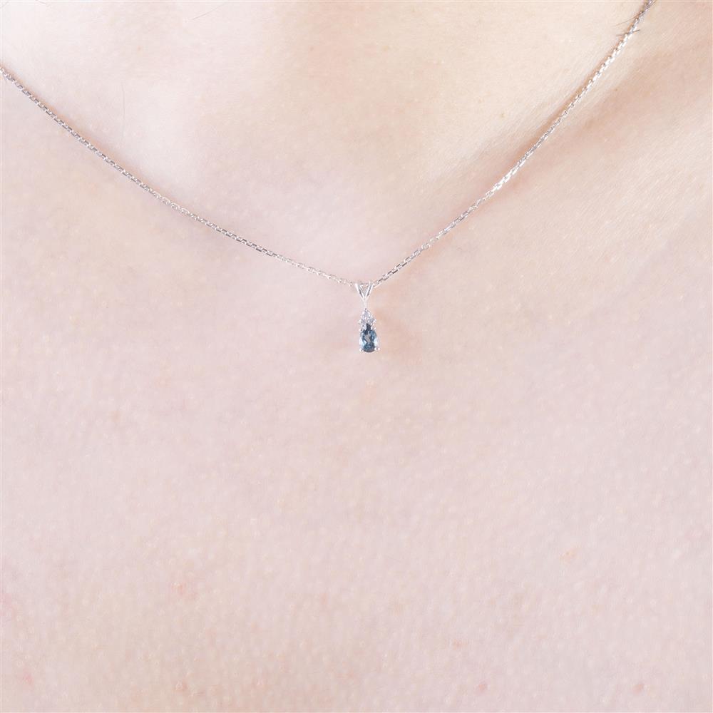 Mặt dây chuyền sở hữu thiết kế giọt nước Topaz xanh thiên thanh, được đính nổi bật dưới cụm đá trắng sáng tinh khiết. Phần móc trái tim cách điệu mang lại cảm giác mềm mại, nữ tính nhưng vẫn giữ sự tinh tế cao cấp.