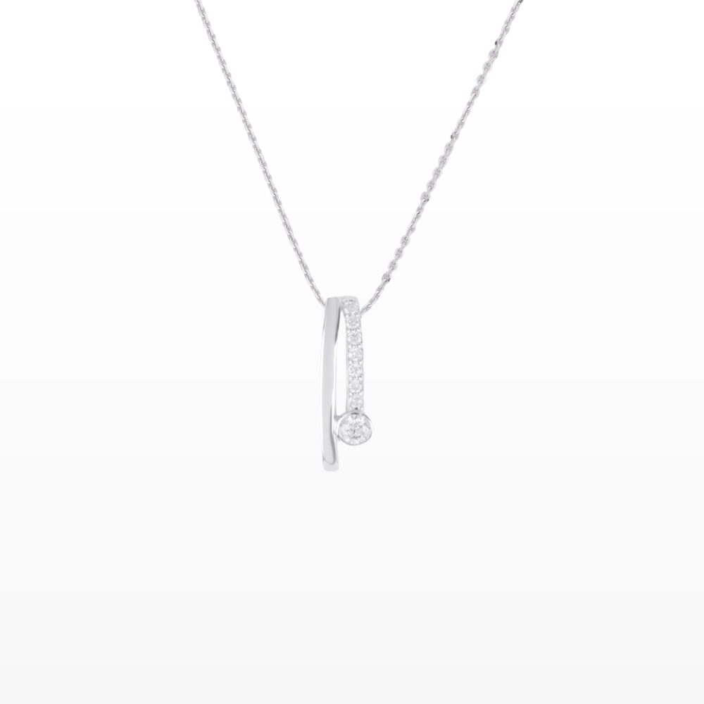 Thiết kế hai đường nét song song, một bên đính kim cương lấp lánh, kết hợp viên kim cương rủ nhẹ ở điểm cuối tạo nên chuyển động mềm mại và cuốn hút.