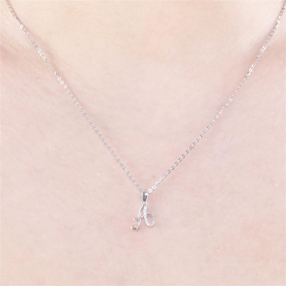 Tỏa sáng với thiết kế tinh tế, mặt dây chuyền chữ A điểm xuyết kim cương lấp lánh chạy dọc ký tự mềm mại. Chi tiết trái tim vàng hồng nhỏ nhắn nơi chân chữ mang đến nét duyên dáng, tượng trưng cho tình yêu và sự trân trọng.