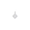 Mặt dây chuyền kim cương vàng trắng thiết kế hình thoi với cụm kim cương tấm được sắp xếp tinh tế quanh viên chủ trung tâm. Bố cục cân đối tạo hiệu ứng lấp lánh nổi bật, mang vẻ đẹp sang trọng và hiện đại, dễ dàng kết hợp cùng nhiều kiểu dây chuyền.