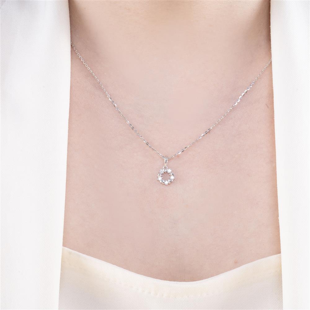 Một thiết kế nhỏ nhắn nhưng đầy cuốn hút từng viên đá trắng được đính khéo léo tạo nên quầng sáng mềm mại, phản chiếu ánh sáng lung linh theo từng nhịp chuyển động, tôn lên vẻ thanh thoát của nàng.