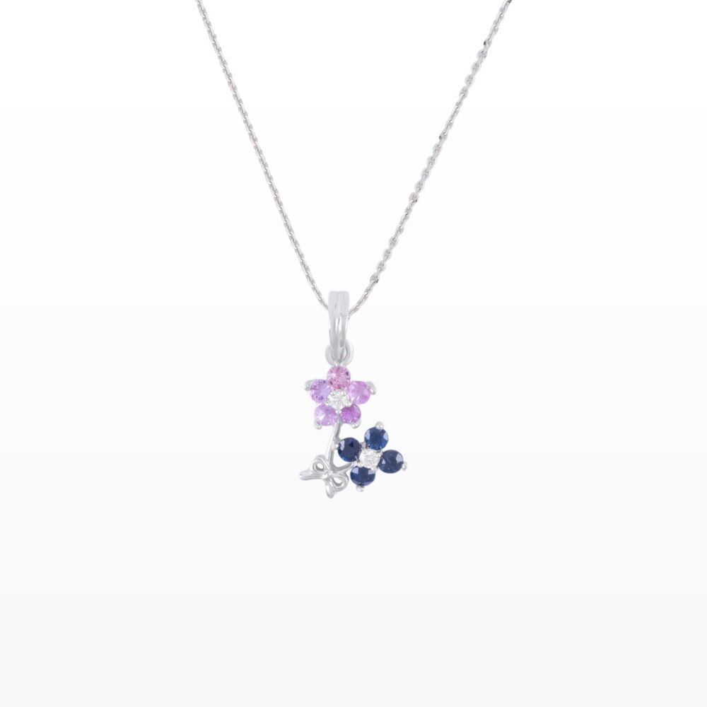 Hai bông hoa nhỏ được kết hợp tinh tế với sắc hồng dịu dàng và xanh sâu lắng, tạo nên điểm nhấn màu sắc hài hòa và cuốn hút. Đường nét mềm mại cùng chi tiết chế tác tinh xảo giúp tổng thể trở nên nhẹ nhàng, nữ tính. Đây là món trang sức hoàn hảo để nàng thêm phần rạng rỡ và nổi bật trong từng khoảnh khắc.