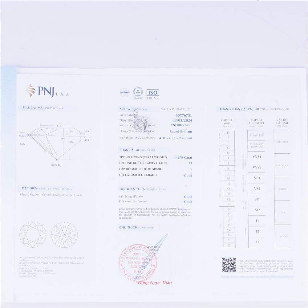 | Kim cương viên: | 4.31 - 4.33LY G/I2 |