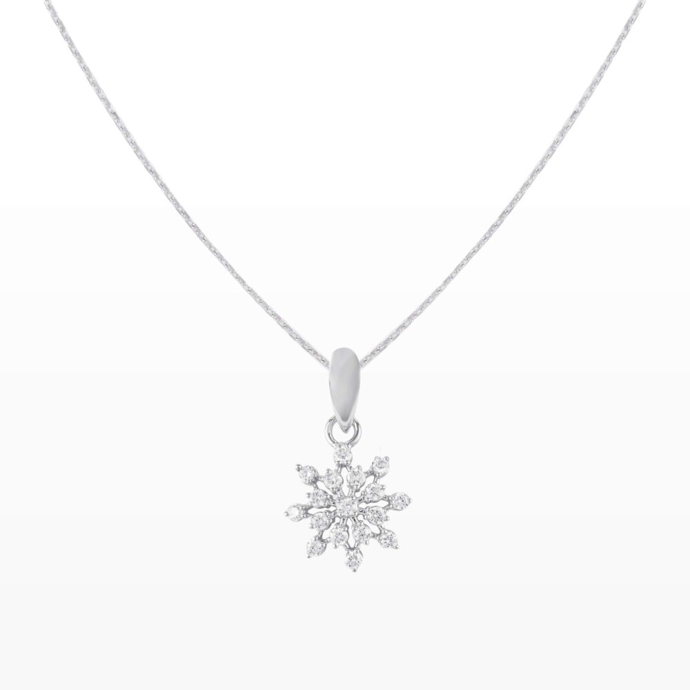 Thiết kế lấy cảm hứng từ bông tuyết đang nở rộ, mỗi viên kim cương được sắp xếp tỉ mỉ theo dạng tia sáng lan tỏa, tạo hiệu ứng lấp lánh đa chiều khi gặp ánh sáng. Tổng thể mang đến cảm giác nhẹ nhàng, thanh thoát nhưng vô cùng cuốn hút.