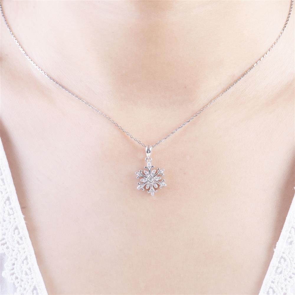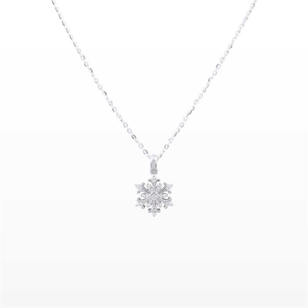 Lấy cảm hứng từ hình ảnh hoa tuyết tinh xảo, mặt dây chuyền sở hữu thiết kế cân xứng với các nhánh uốn lượn mềm mại, tỏa đều như một tuyệt tác của thiên nhiên. Những viên kim cương nhỏ được đính tỉ mỉ trên từng cánh, tạo hiệu ứng lấp lánh nhẹ nhàng, mang đến cảm giác trong trẻo, tinh khiết nhưng vẫn đầy cuốn hút.