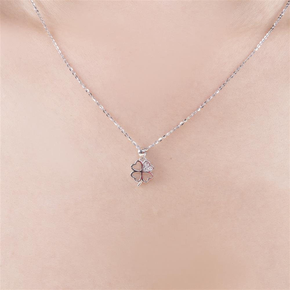 Mặt dây chuyền cỏ bốn lá với thiết kế rỗng tinh giản mang đến vẻ đẹp thanh thoát và hiện đại. Điểm nhấn nằm ở một cánh lá được đính đá lấp lánh, tạo cảm giác rực rỡ nhưng vẫn giữ sự nhẹ nhàng đặc trưng của phong cách tối giản.