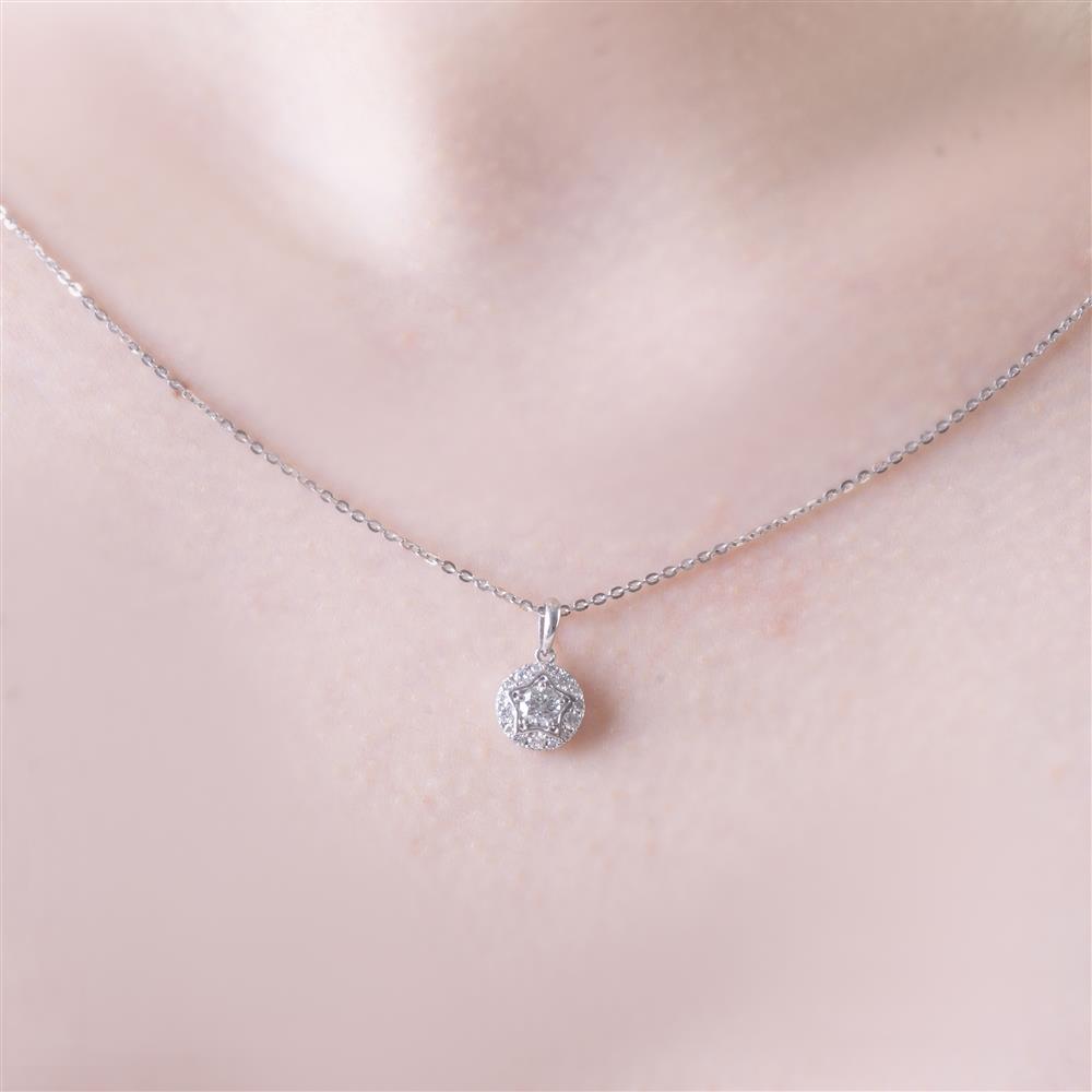 Thiết kế nổi bật với viên đá chủ lấp lánh được đặt trong khung hình ngôi sao, bao quanh bởi vòng tròn đá nhỏ li ti tạo hiệu ứng tỏa sáng mạnh mẽ. Nhìn vào mặt dây, nàng sẽ cảm nhận được hình ảnh một ngôi sao đang tỏa ánh sáng ở trung tâm bầu trời đêm – rực rỡ, rõ nét và đầy cuốn hút.